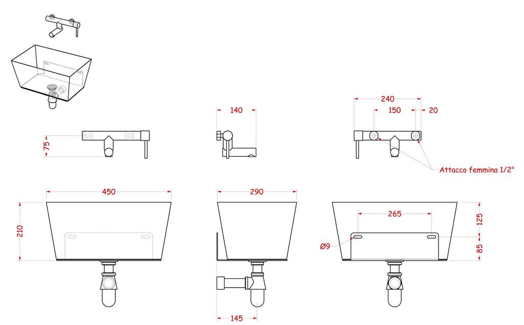 • Composta da 3 elementi: miscelatore, vaschetta e mensola a scomparsa