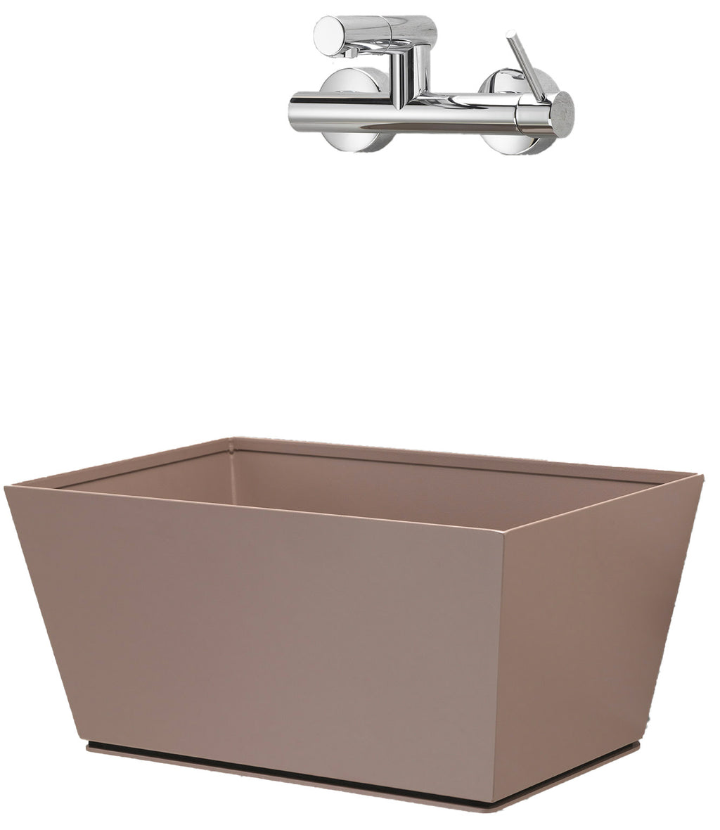 Fontana a Parete da Giardino con Miscelatore e Vasca 45x29x20 cm Belfer 42/PRQM Tortora