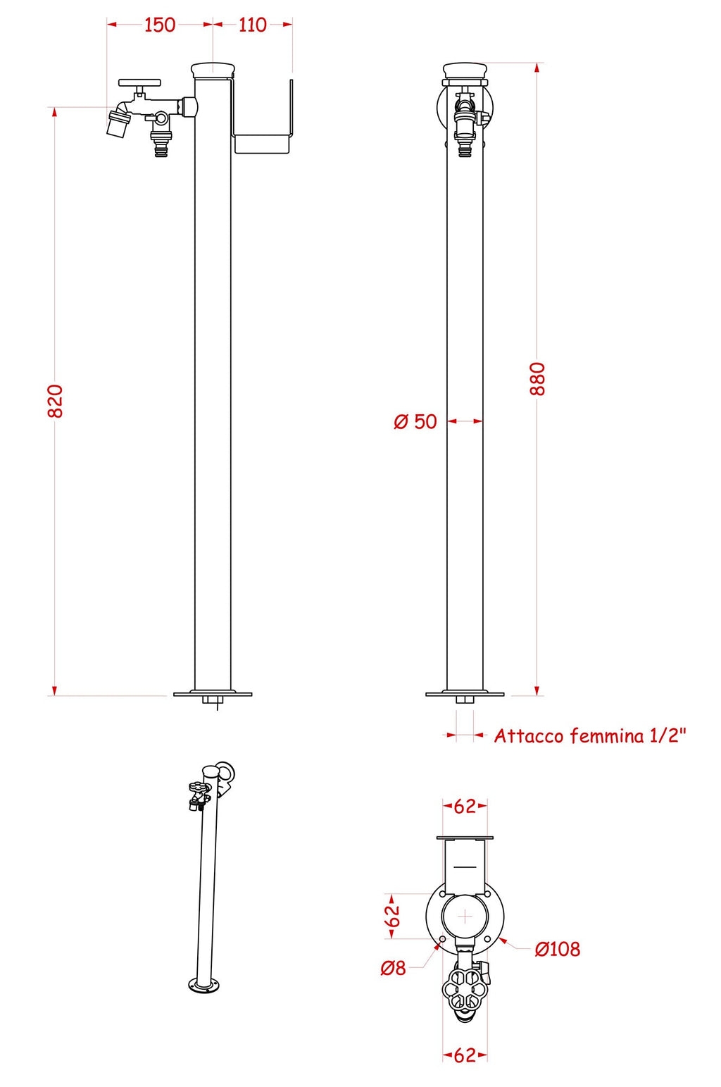 - Raccordo di collegamento acqua: Tubo a Filo 1/2" femmina