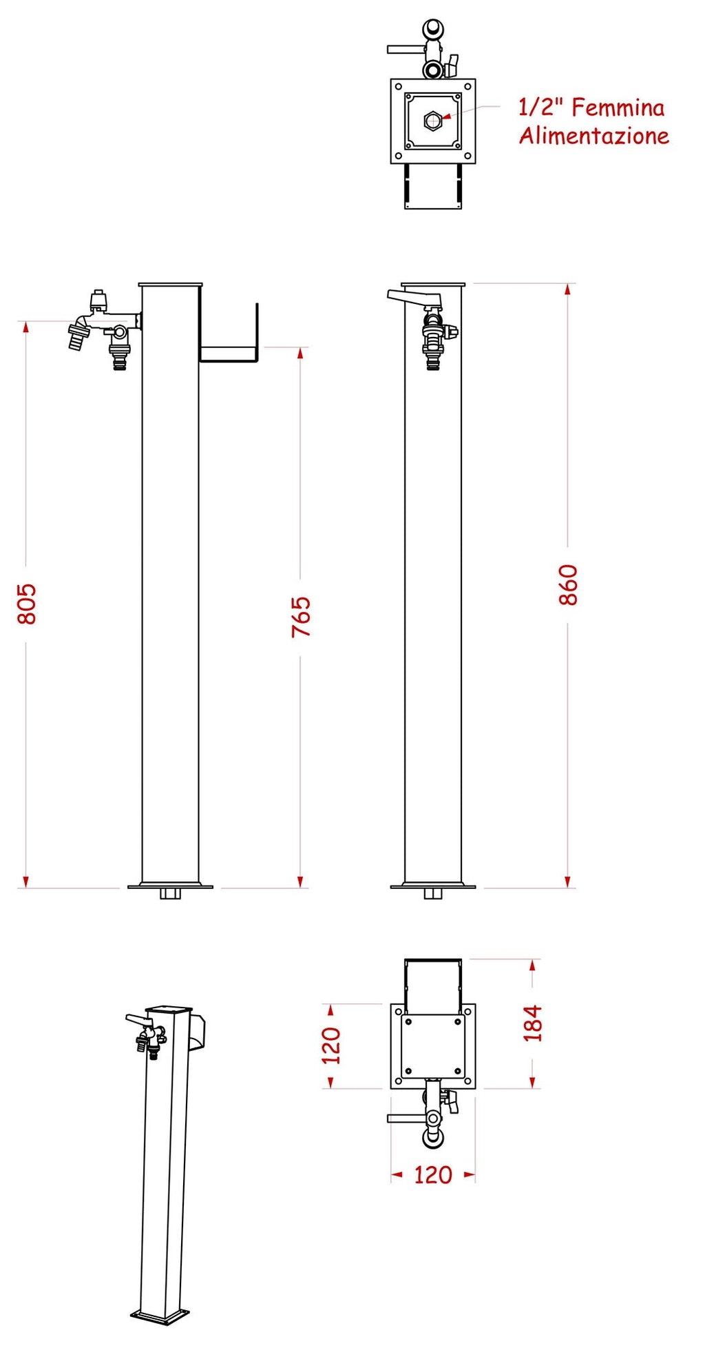 Fontaine de jardin avec robinet double 85x9x15 cm Belfer 42/QRR Tortora