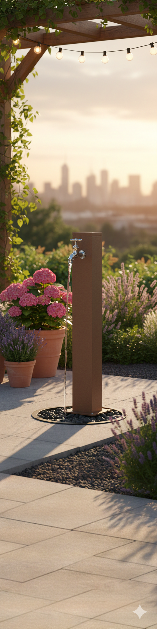 Fontaine de jardin au design innovant et original , 42/RE avec robinet Belfer .