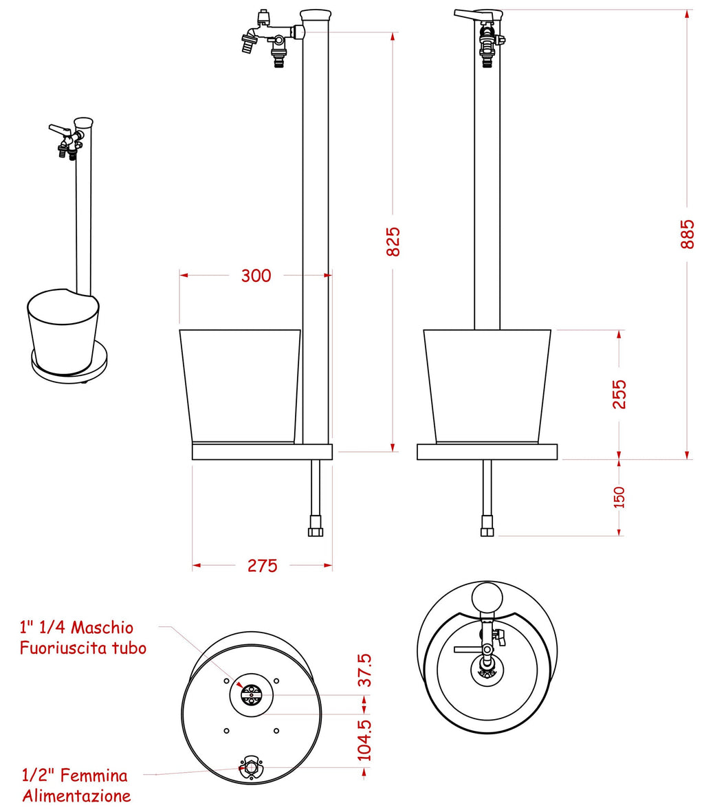 - Complet avec drain et bouchon avec raccord 1" 1/4 mâle