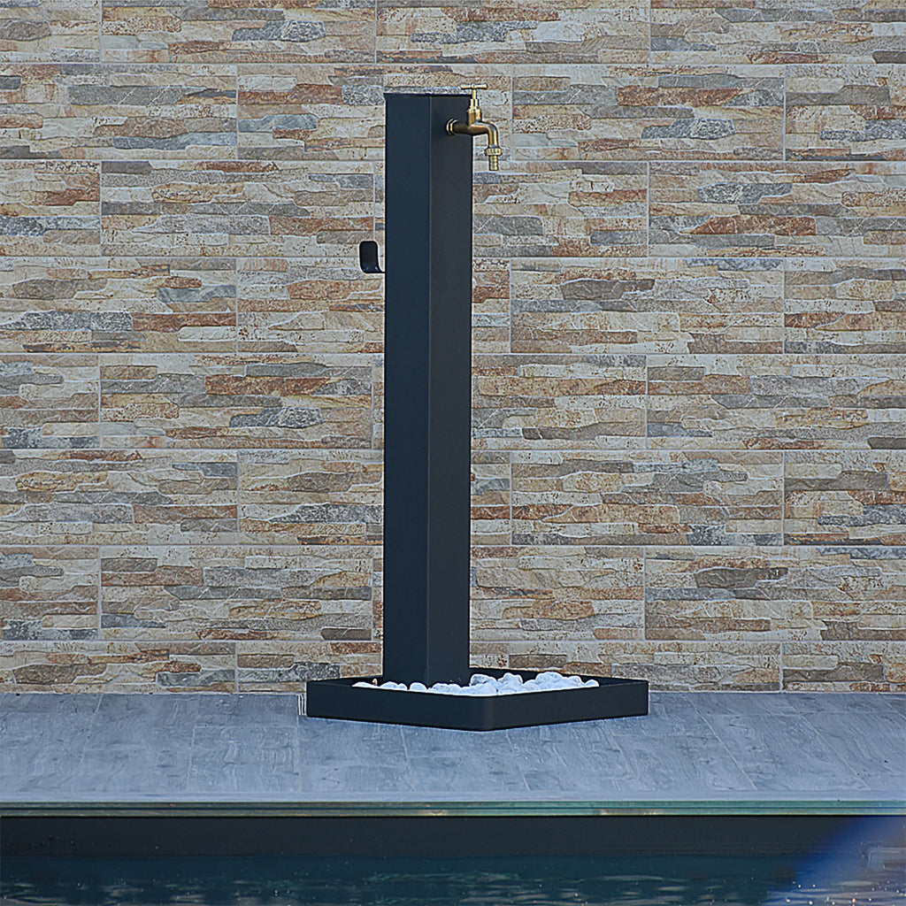 Fontana da Giardino Design a Colonna Quadrata Rubinetto in Ottone e Base con Ciottoli Antracite