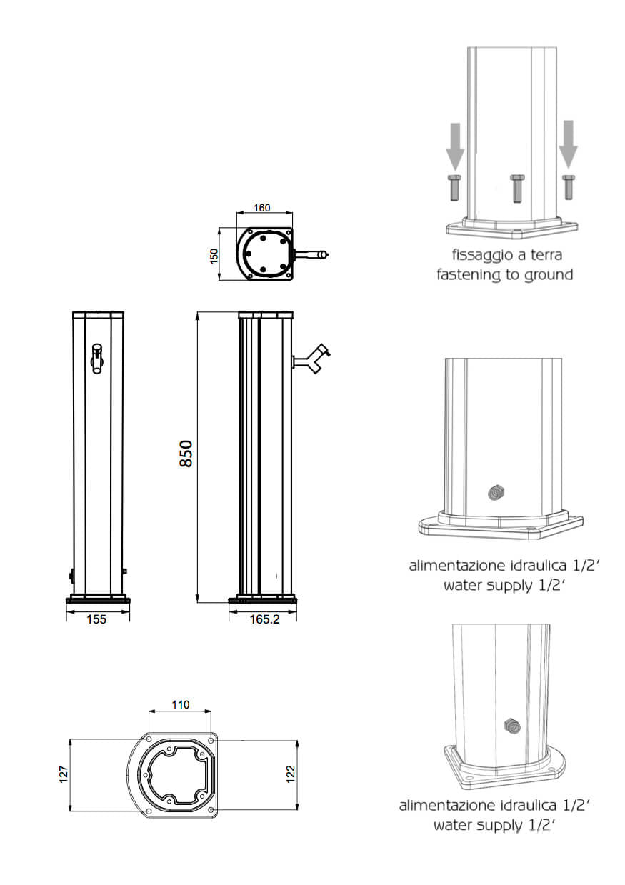 L'armonia e l'eleganza delle sue forme la rendono un complemento d'arredo adatto per qualsiasi ambientazione, sia solo per il giardino o se necessitate di una doccia per la vostra piscina. Ideale per strutture pubbliche e balneari.