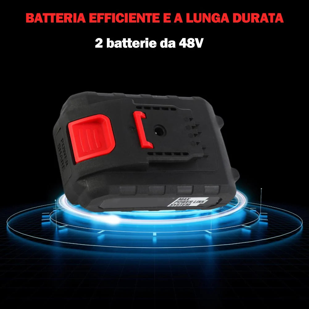 Le forbici da potatura elettriche da 48V rappresentano uno strumento essenziale per ogni giardiniere o professionista agricolo. Queste cesoie elettriche portatili, dotate di una lama in acciaio inox ad alto tenore di carbonio, sono capaci di tagliare rami fino a 25mm di spessore con estrema precisione. Questo strumento è stato progettato per rendere i lavori di potatura più semplici, veloci ed efficienti, grazie a una serie di caratteristiche tecniche avanzate e alla comodità dell'uso senza filo. Il kit include due batterie da 48V che garantiscono una lunga autonomia di utilizzo, accessori e un caricabatterie per una ricarica veloce, il tutto contenuto in una pratica valigetta che facilita trasporto e conservazione. La confezione comprende anche una bottiglia per olio lubrificante e chiavette per la manutenzione delle lame. Con un'apertura delle lame fino a 2,8 cm, queste forbici sono perfette per affrontare una vasta gamma di dimensioni di taglio, rendendo la potatura efficiente e meno faticosa.