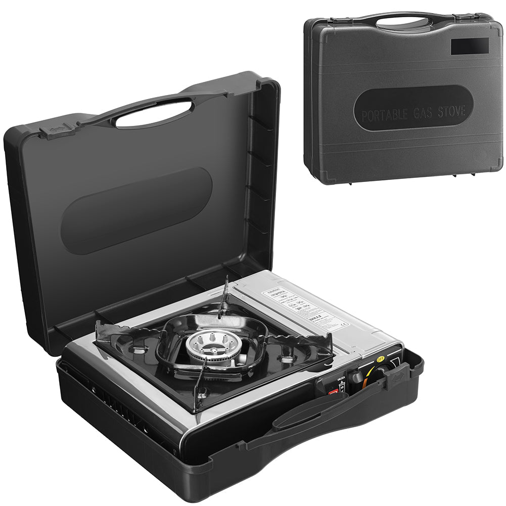 Fornello a Gas 1 Fiamma Portatile Grigio con Valigetta Fornellino da Campeggio