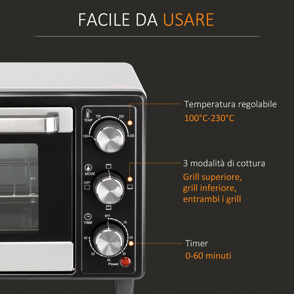 - TEMPÉRATURE ET MINUTERIE RÉGLABLES : Vous pouvez facilement régler la température du four électrique de 100°C à 230°C et régler la minuterie jusqu'à 60 minutes.