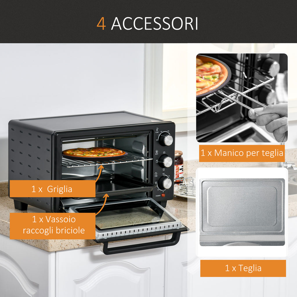 - CAPACITÉ 21L et DESIGN COMPACT : Grâce à ce petit four électrique vous pourrez réchauffer des pizzas et des gâteaux d'un diamètre de 25 cm ainsi que des tranches de pain. Grâce à ses dimensions compactes, vous pouvez le placer avec un minimum d'espace dans votre cuisine.