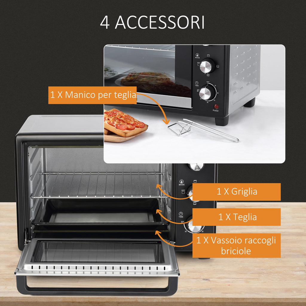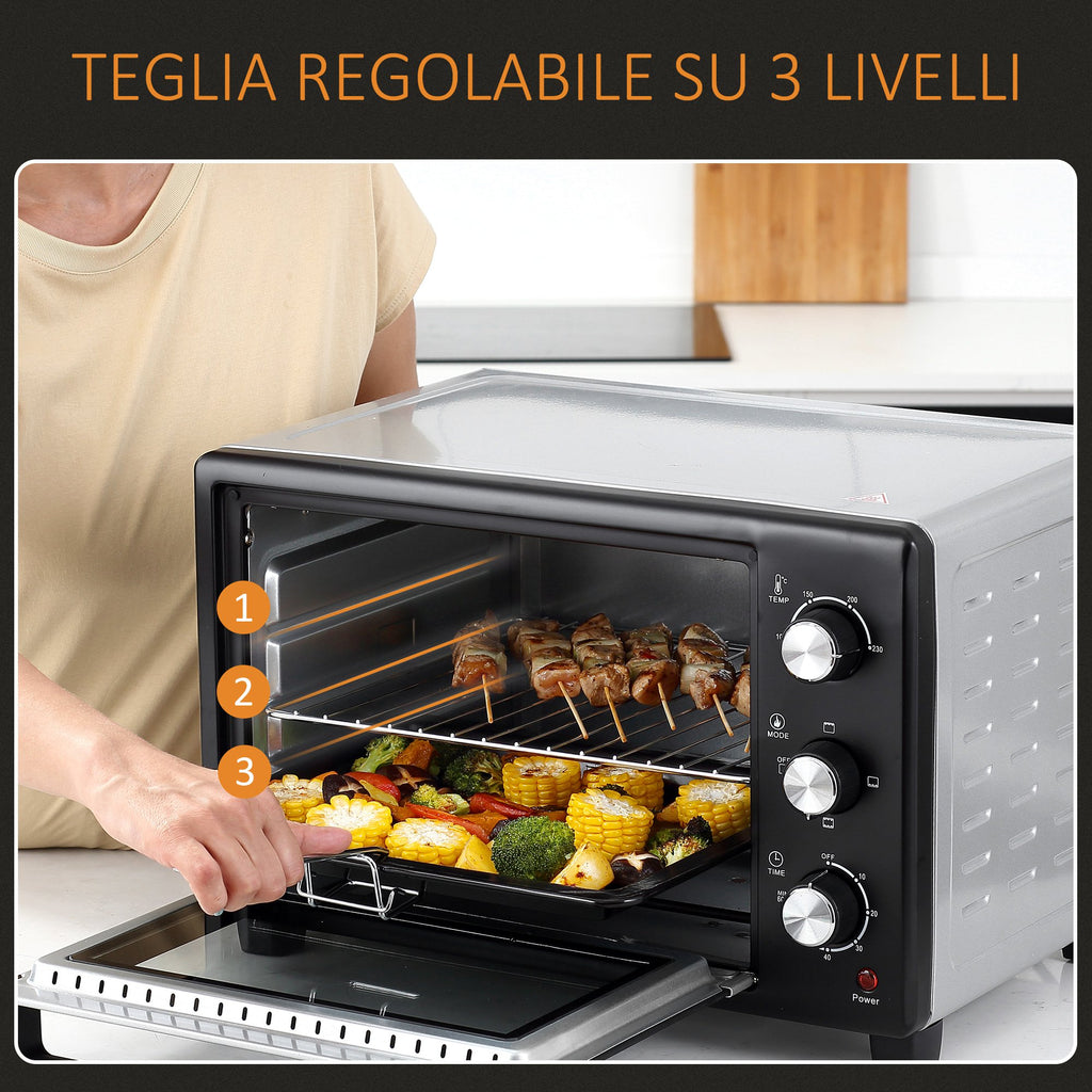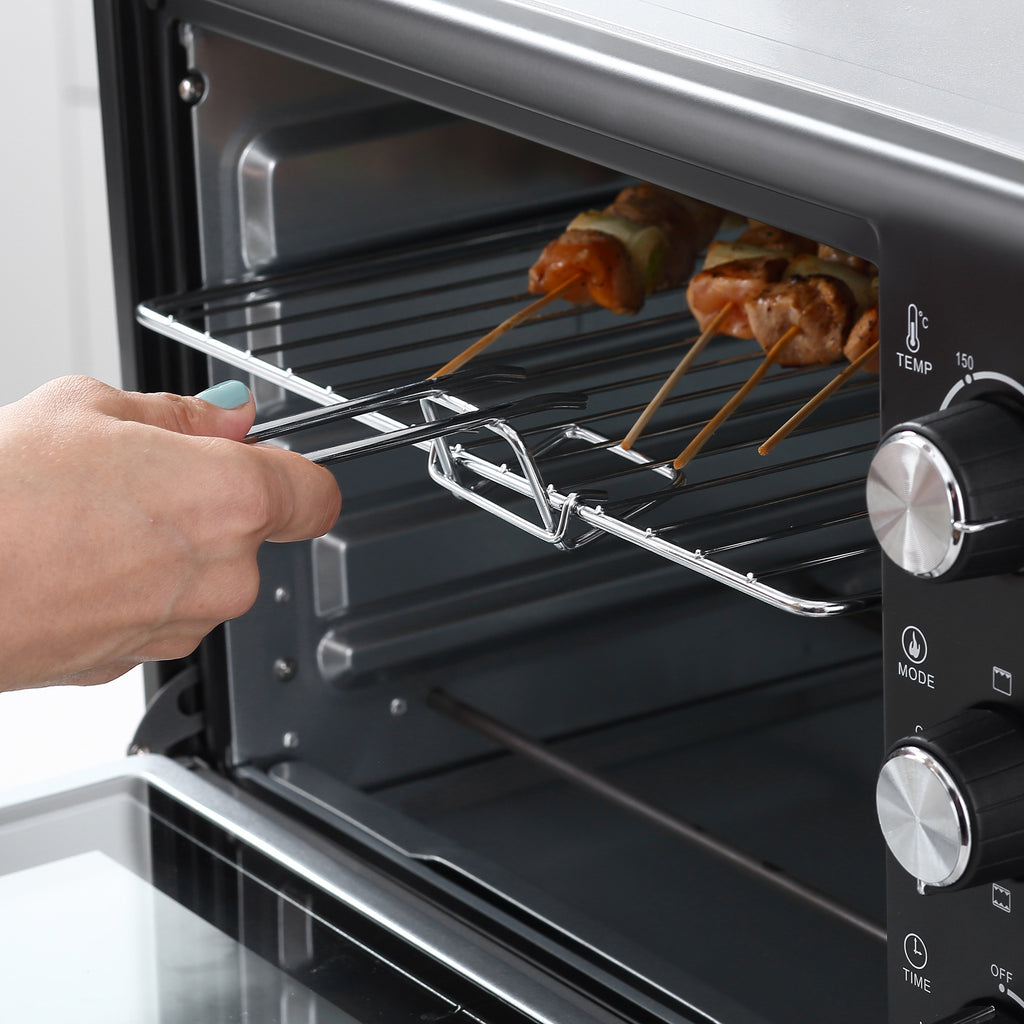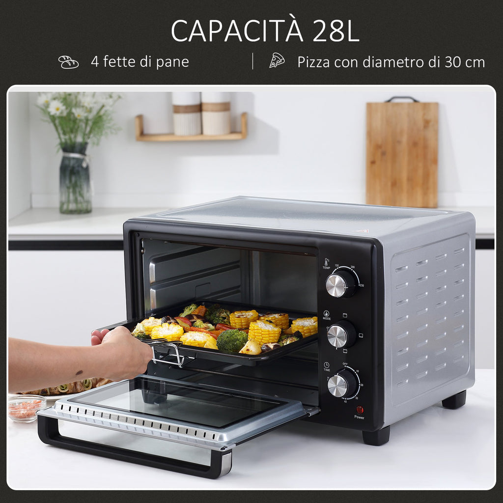 Four électrique de 28 litres avec grille et plateau argentés et noirs