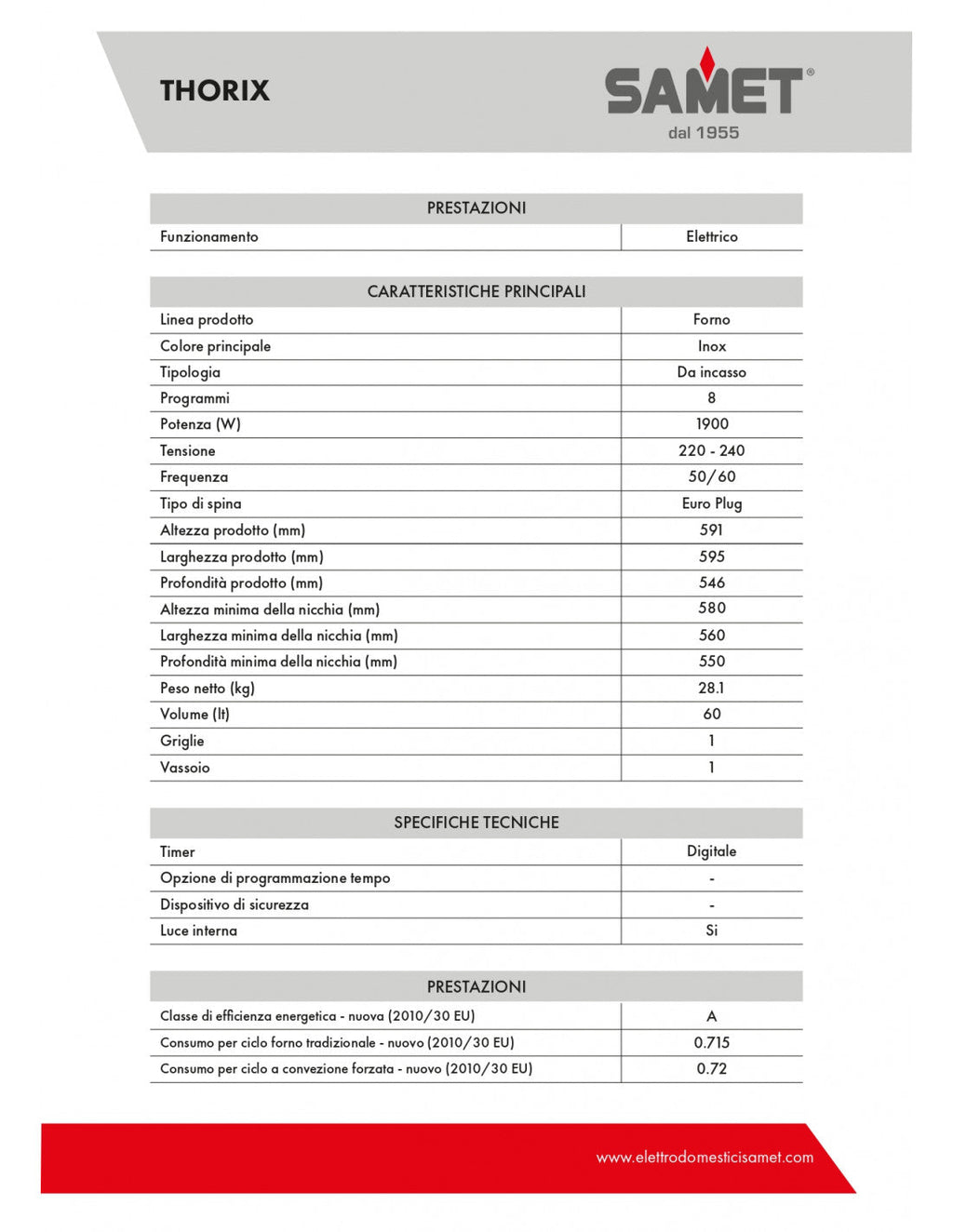- Consumo per Ciclo (Convezione Forzata): 0.72 kWh