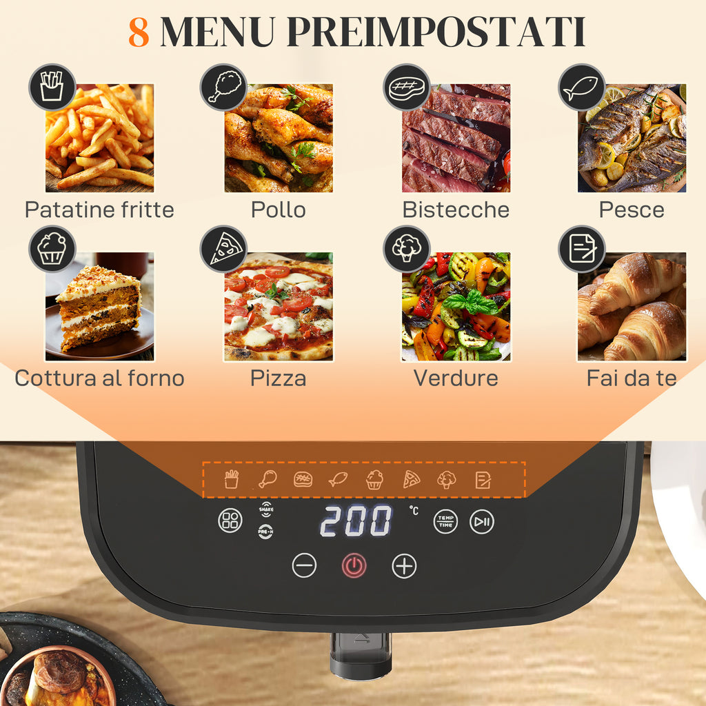 Friggitrice ad Aria Air Fryer 1700W da 6,8L con 8 Programmi di Cottura Nero