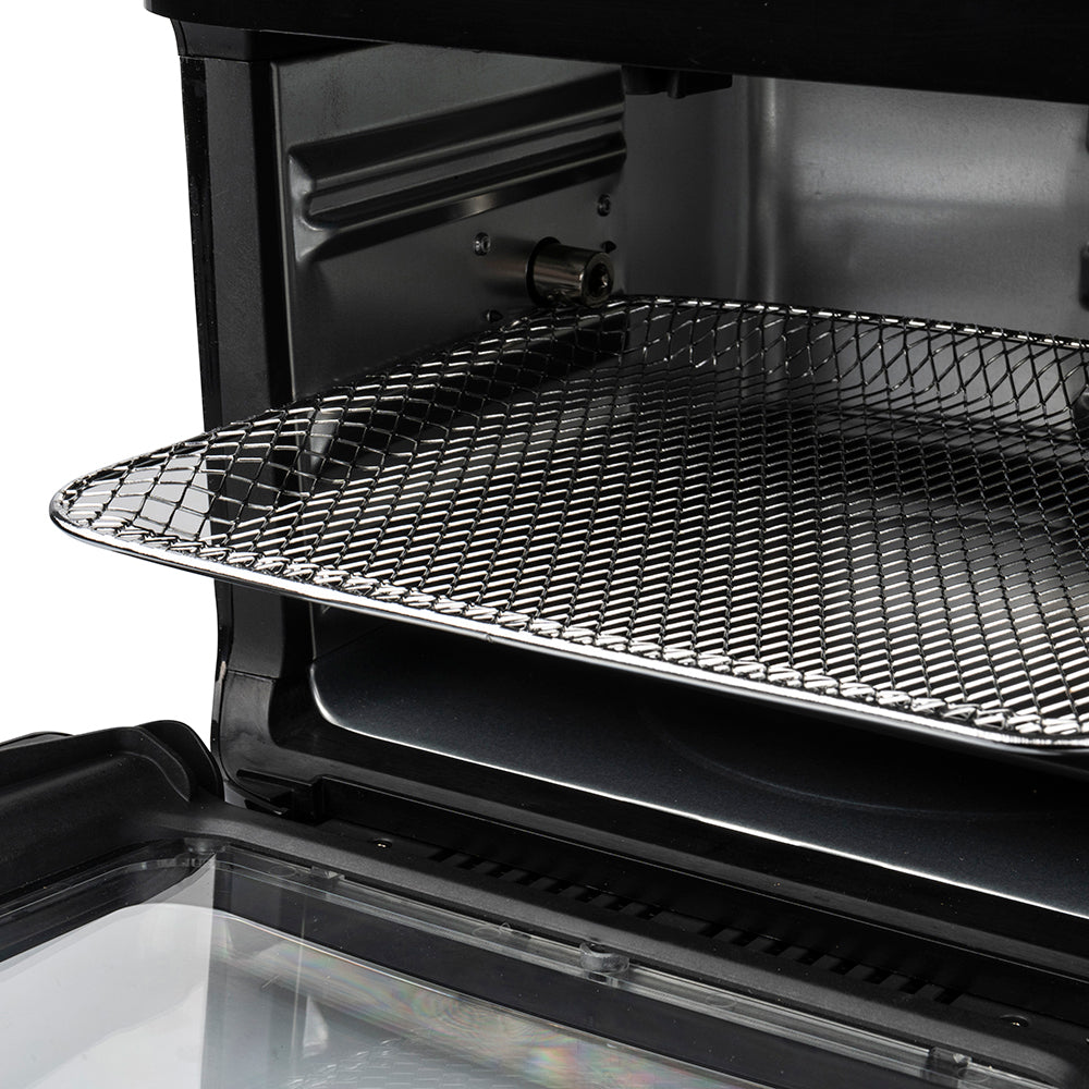 Frire de manière saine, cuire au four avec de délicieuses croûtes croustillantes, rôtir à la broche de manière savoureuse et appétissante, sécher en peu de temps et de manière simple et pratique : tout cela est AriaPiù Evolution. AriaPiù propose 9 programmes de cuisson préréglés qui permettent la cuisson croisée de viande, poisson, produits au levain sucrés et salés, ainsi que la possibilité de régler et de régler manuellement la température et la minuterie de cuisson. La lumière interne et la porte amovible avec fenêtre d'observation vous permettent de vérifier en permanence l'état de la cuisson, tandis que le bac de récupération est pratique pour collecter les miettes et les graisses. Les accessoires en acier inoxydable fournis comprennent un panier à friture rotatif et amovible, un gril pour la cuisson des aliments, un tournebroche et un accessoire pratique et pratique pour extraire le gril. AriaPiù Evolution offre une option de préchauffage pratique et pratique, essentielle pour le chauffage initial du compartiment et assurant ainsi une cuisson vraiment uniforme et homogène.