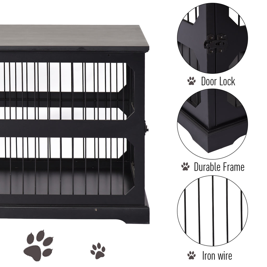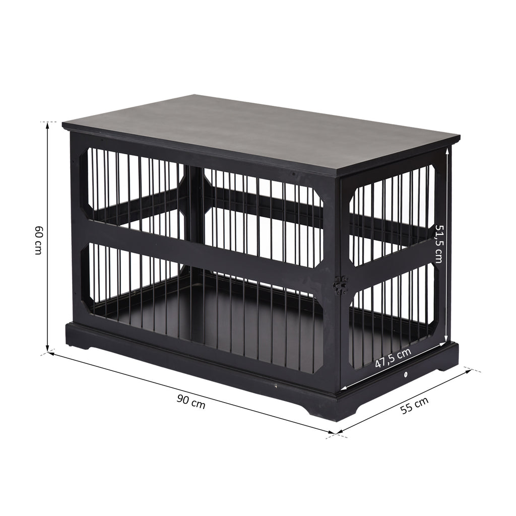 Cage pour chiens de petite et moyenne taille 55x90x60 cm en MDF noir