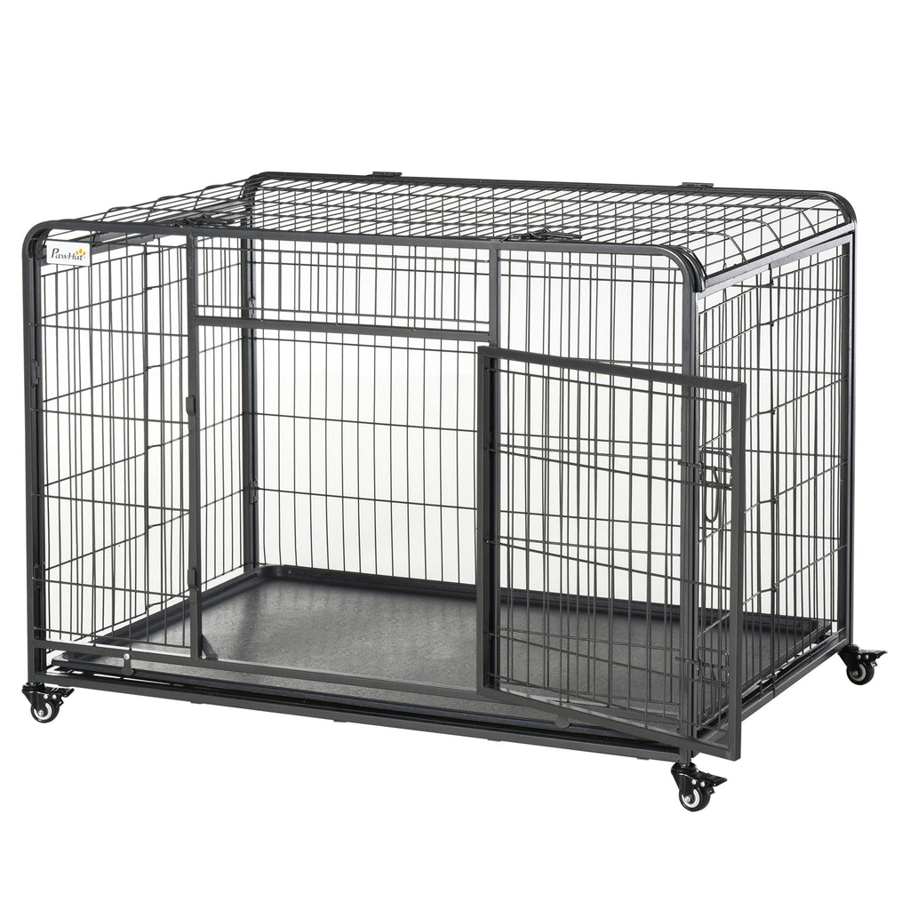 Cage pliable pour chien 125x76x81 cm avec roues en métal gris