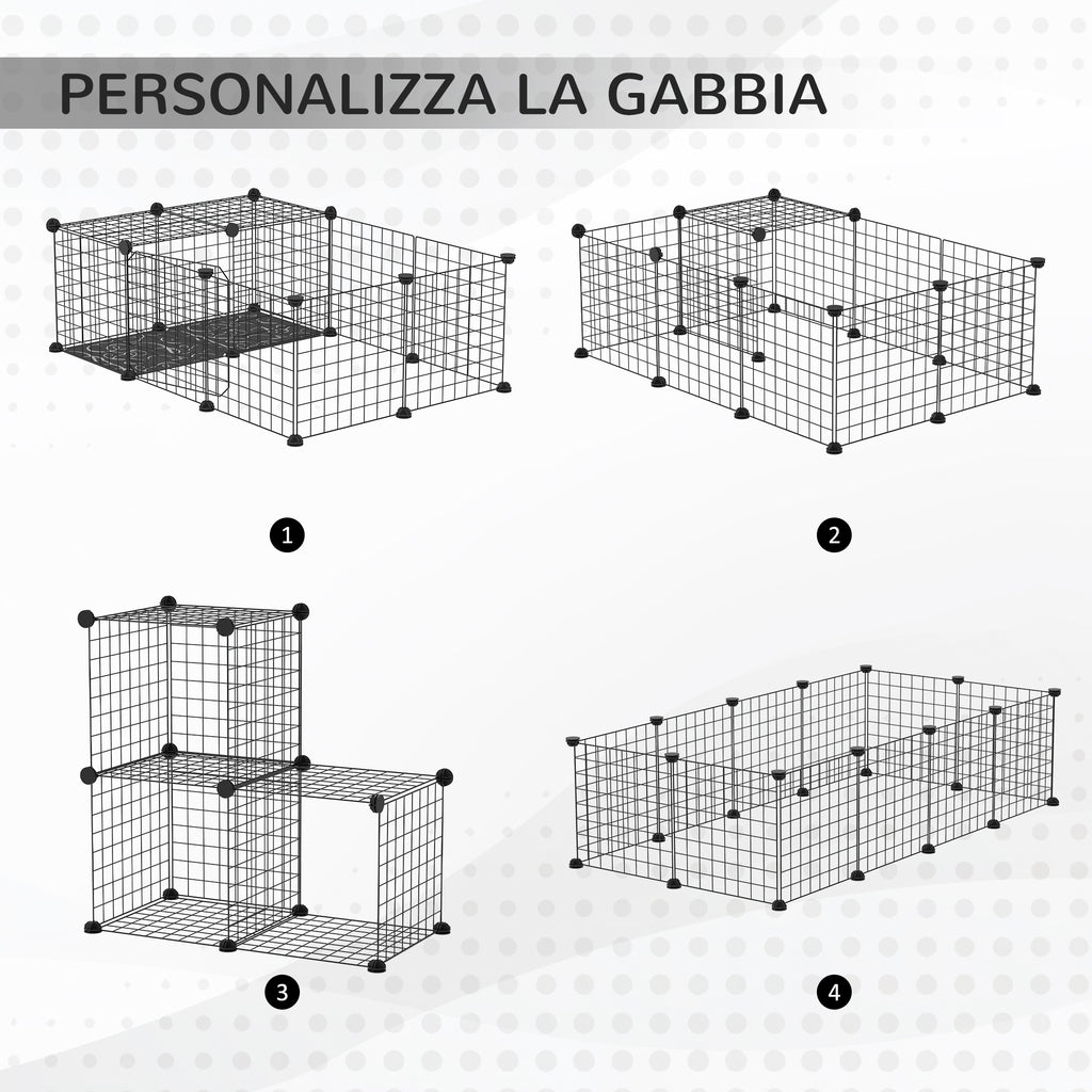 La cage pour animaux a été conçue pour offrir un espace sur mesure à vos animaux. Grâce aux connecteurs vous pourrez composer les panneaux comme vous le souhaitez et créer un espace sur mesure pour vos petits amis. La structure comporte une porte pour faire entrer et sortir facilement les animaux de la cage et est parfaite pour les cochons d'Inde, les lapins et autres petits animaux.