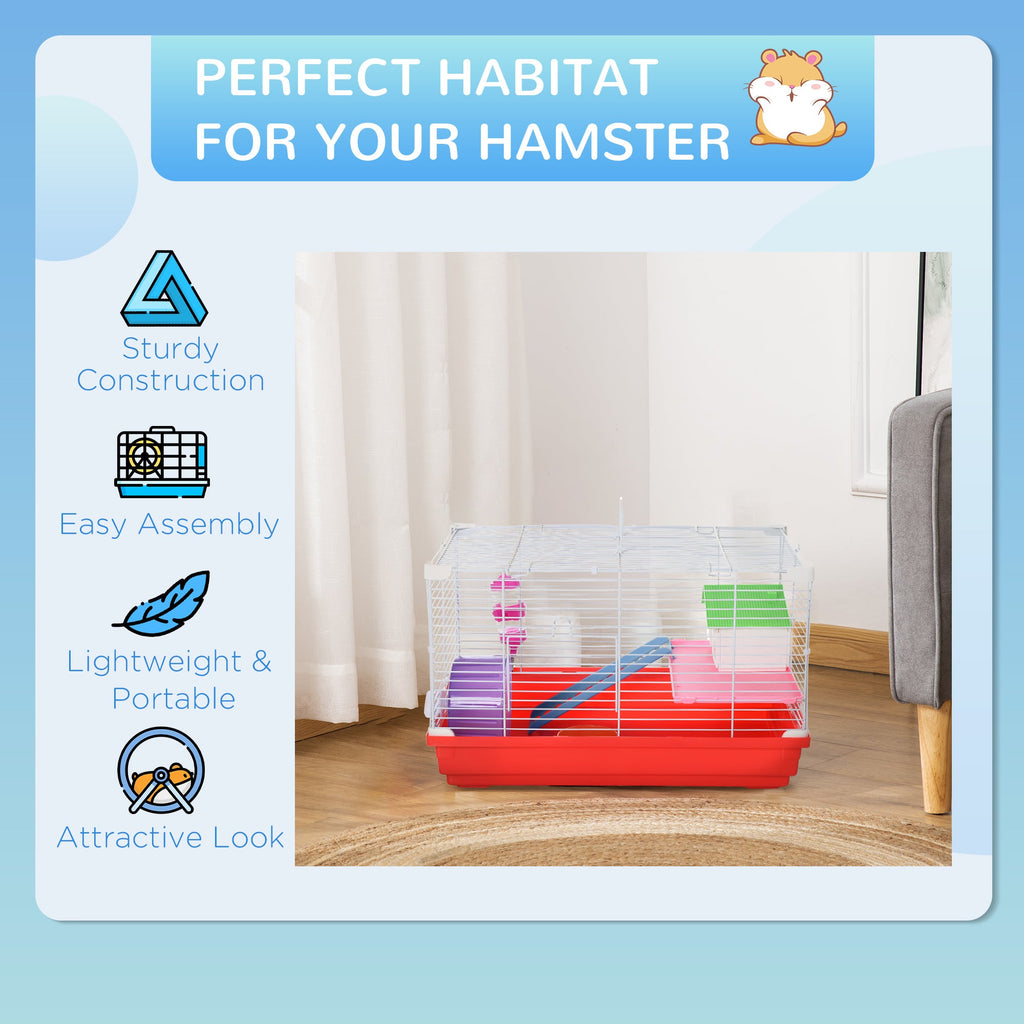 Gabbia per Criceti 2 Livelli 47x30x27 cm in Metallo e PP Rosso