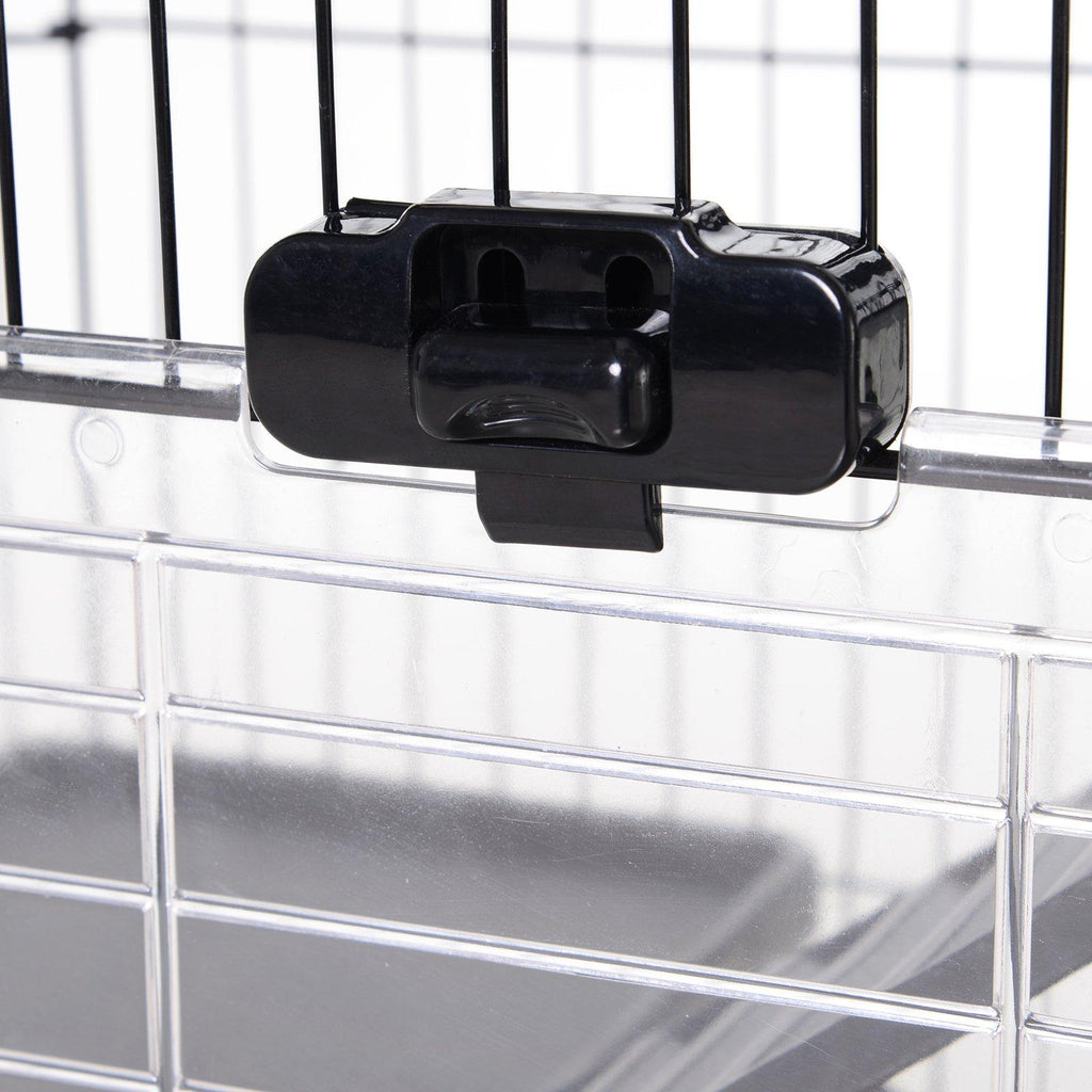 Lapins, rongeurs et cobayes : voici une maison conçue rien que pour eux. Grande et confortable, cette cage à trois étages possède une structure en plastique et en treillis métallique, avec une ouverture pratique en haut et à l'avant. La base est dotée d'un plateau amovible pratique, qui vous permet de nettoyer la cage en un instant, et de quatre roues avec freins pour la déplacer en tout confort.