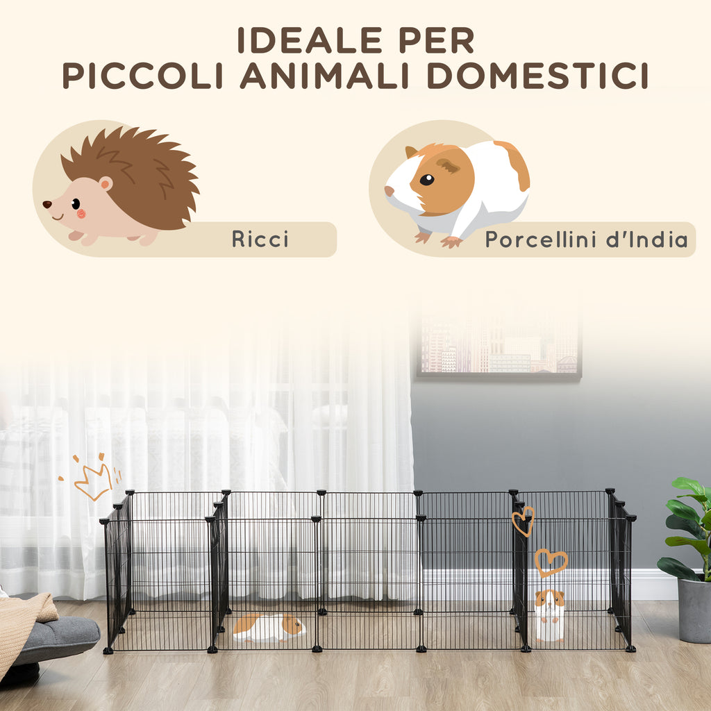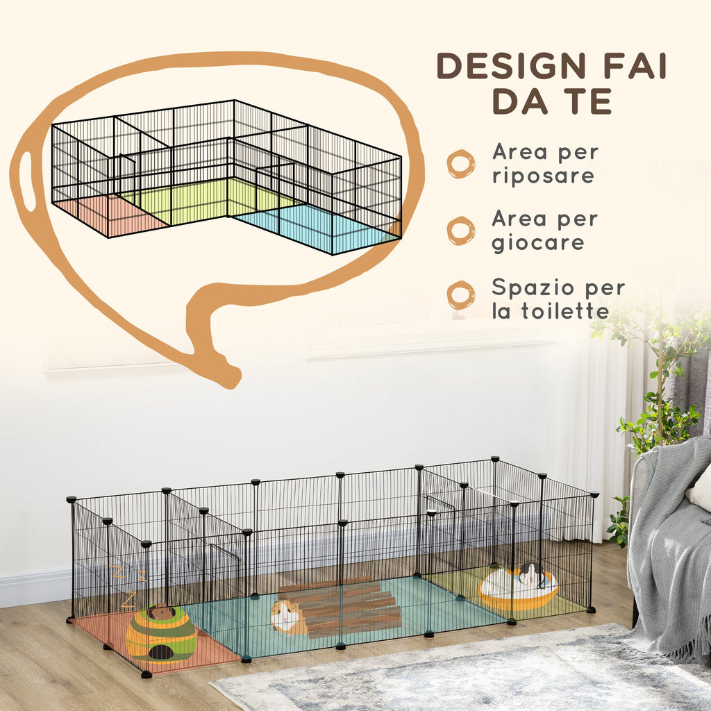 - FORMA PERSONALIZZABILE: Il recinto è dotato di 18 pannelli e 32 connettori multi angolo ed è facile da montare in differenti forme e dimensioni. Questa gabbia per porcellini d'India ed altri piccoli animali può essere accoppiata con più set se la vuoi più grande
