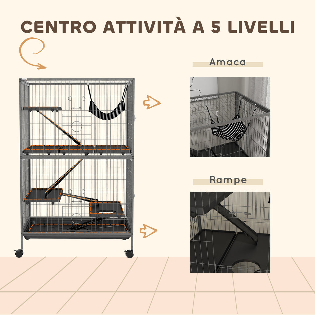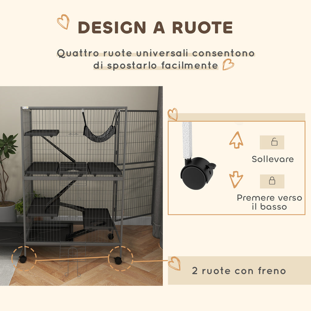 Gabbia per Roditori 80x52x128 cm con 4 Ingressi a Livelli Multipli in Metallo e PP Grigio