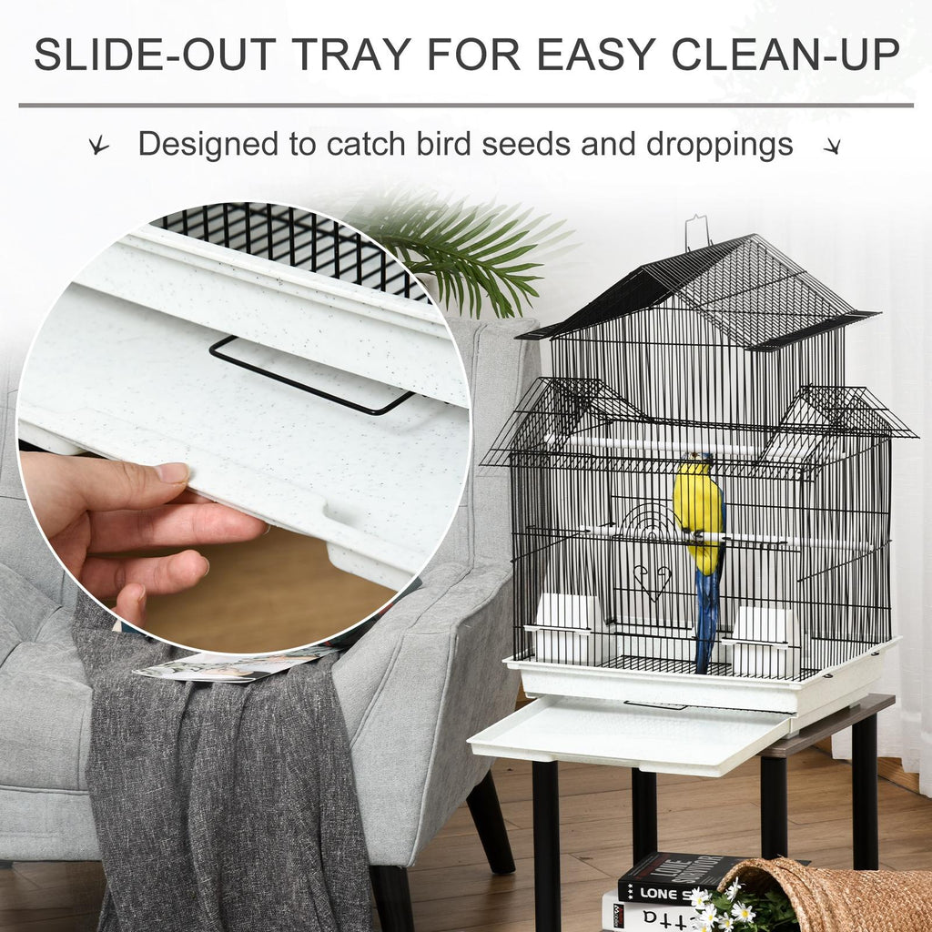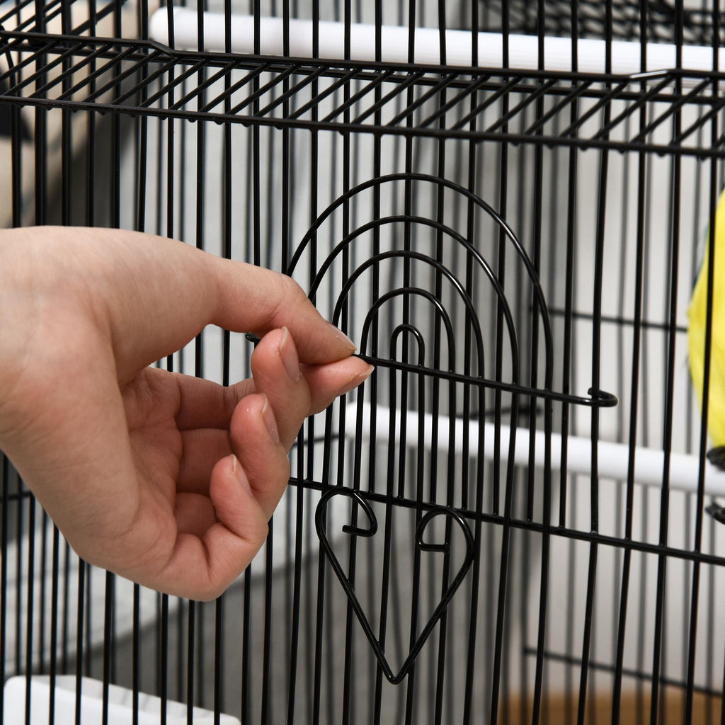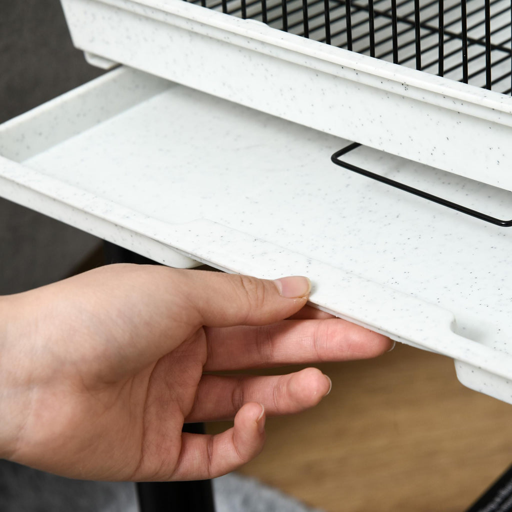 - FACILE À NETTOYER : Le plateau inférieur amovible vous permet de nettoyer facilement la cage à oiseaux. Il y a une grille au fond pour séparer les oiseaux de la saleté déposée au fond du bac.