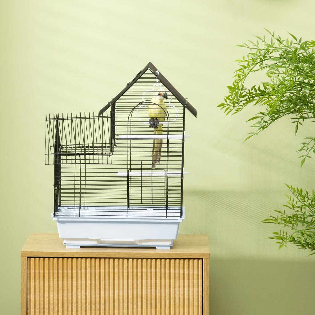 Cage à Oiseaux avec Poignée 39x33x47 cm en Métal avec Plateau Amovible Piquets et Bascule Blanc