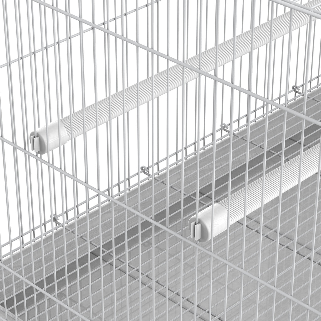Cage à oiseaux avec perchoirs, gamelles et poignée 60x41x41 cm en métal blanc