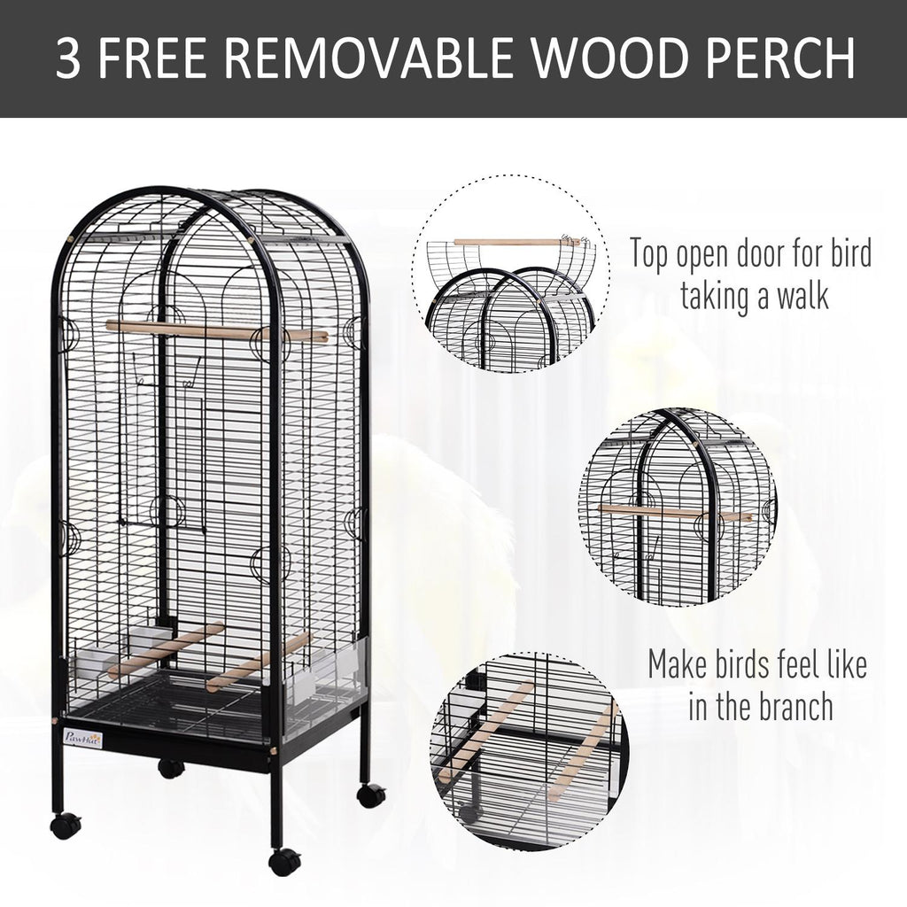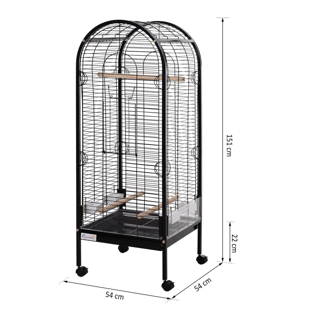 Cage à oiseaux en métal 54x54x151 cm avec perchoirs noirs