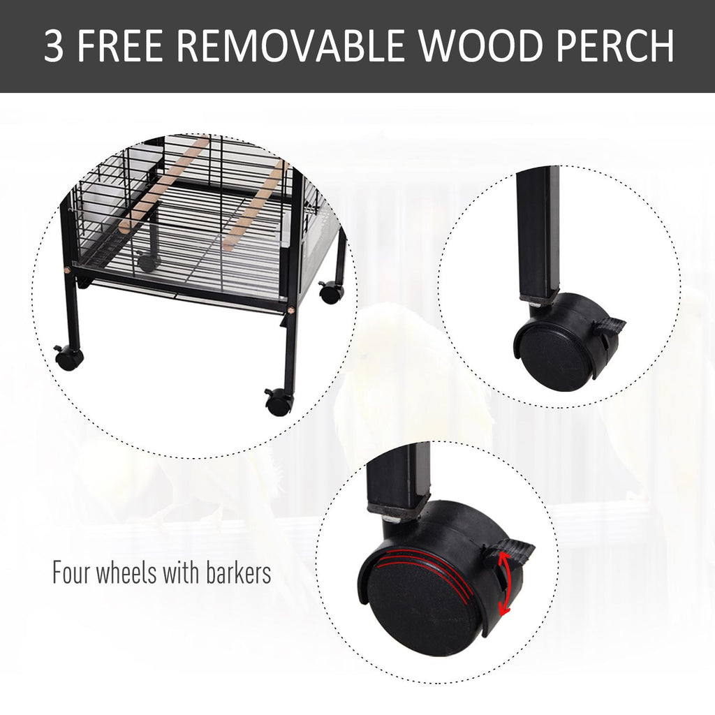 - Avec ses 4 roues, la cage peut être déplacée facilement, sans déranger vos oiseaux.
