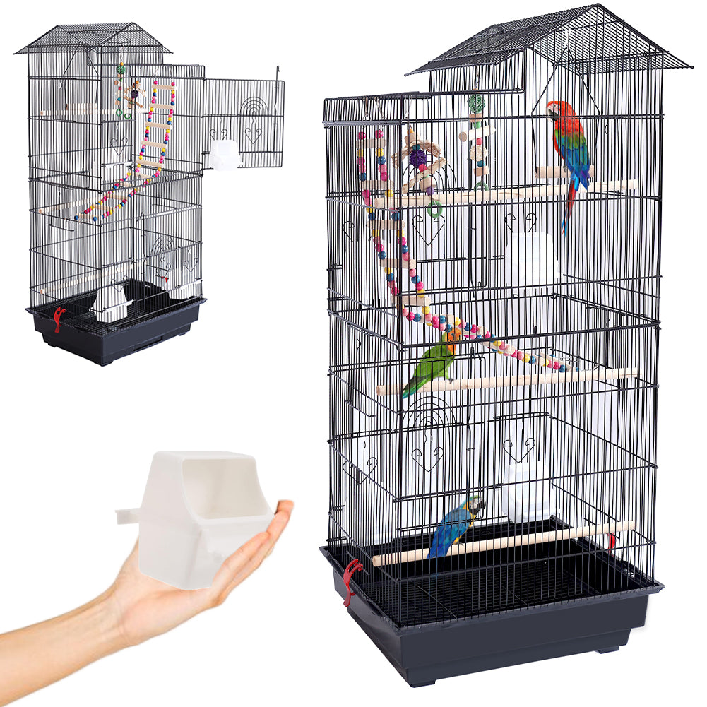 1 x Gabbia Voliera Nera per Uccelli Volatili Pappagalli con 2 Aperture e Giocattoli