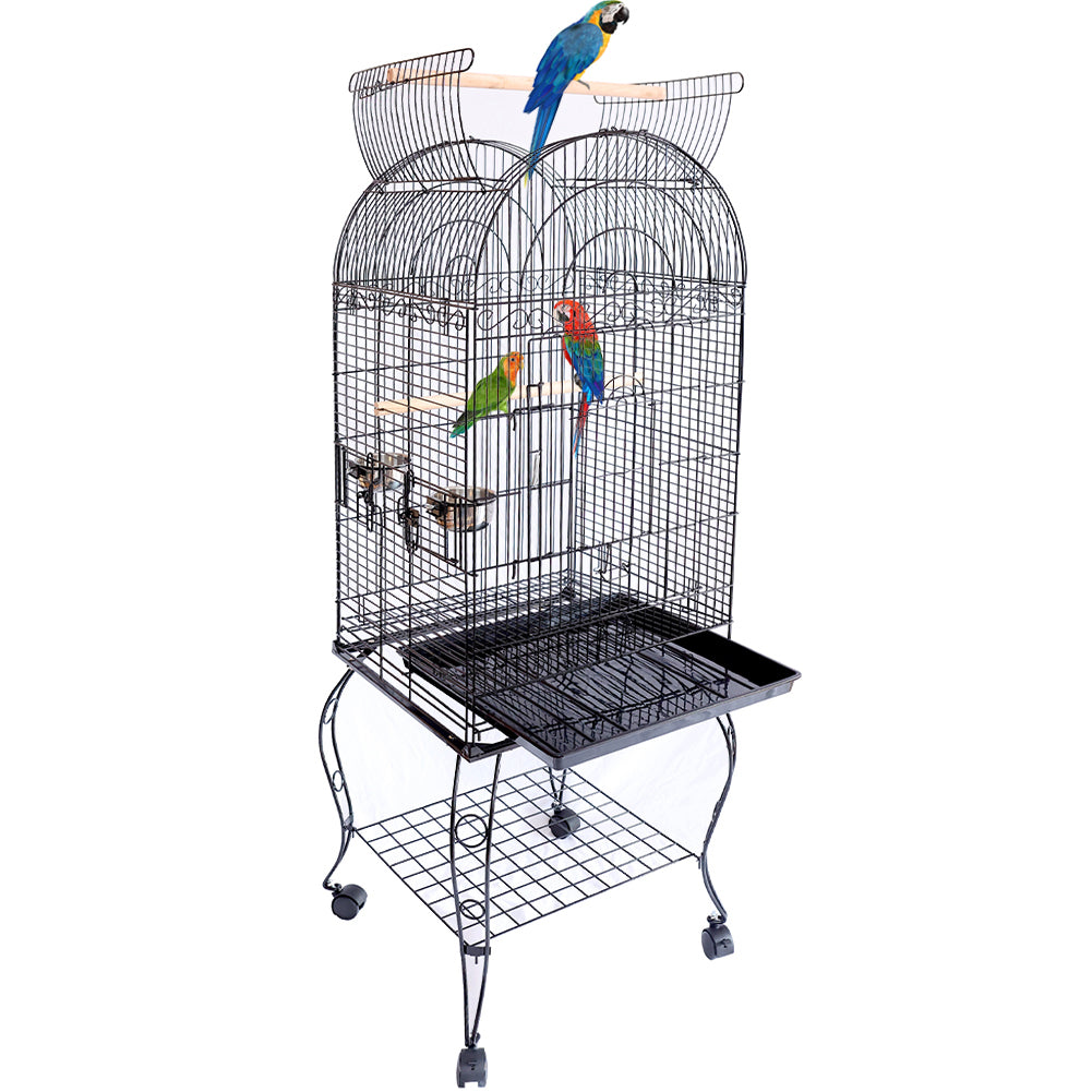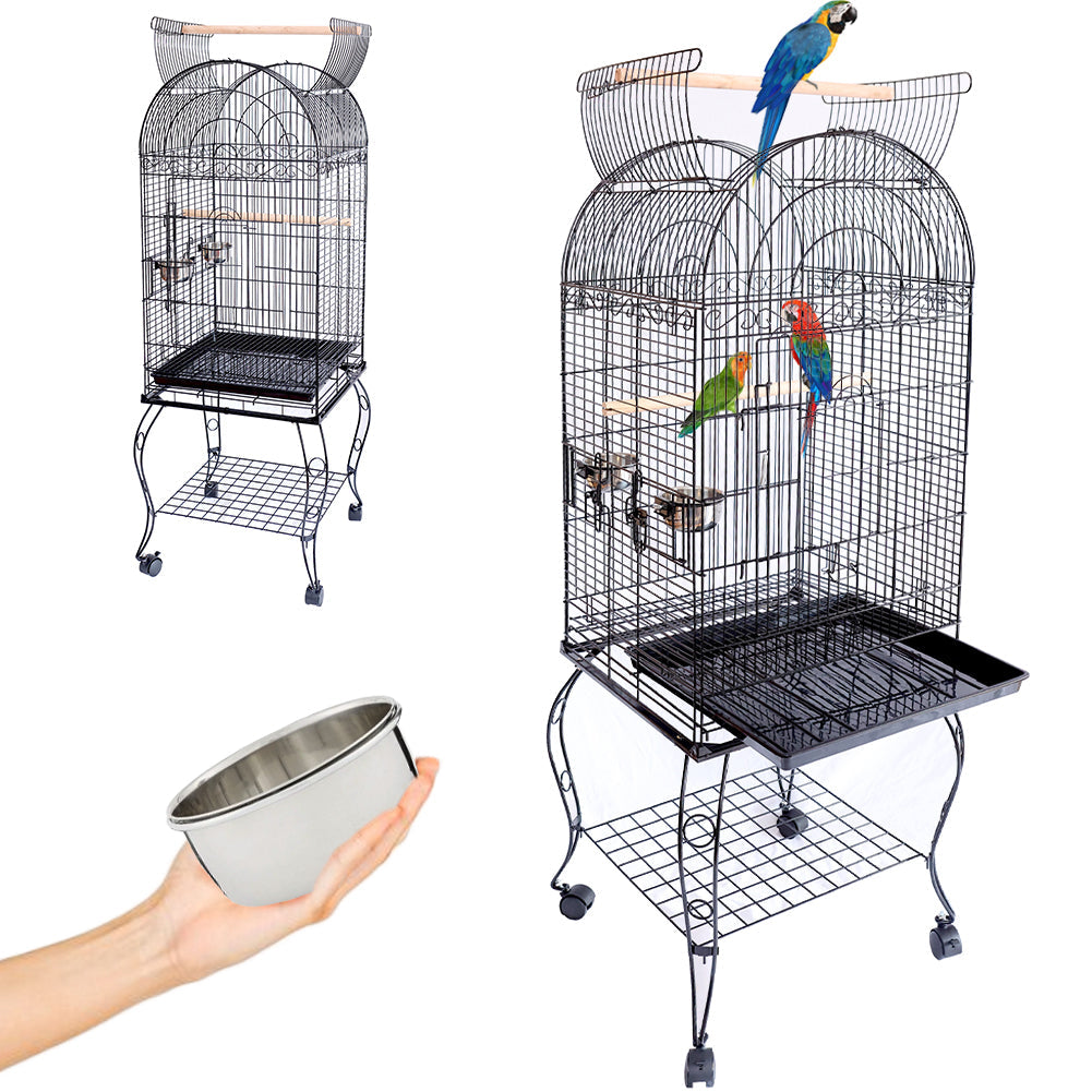 1 x Gabbia Voliera per Uccelli Nera per Pappagalli Inseparabili Tetto Apribile Ruote
