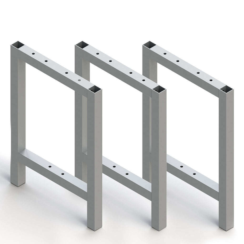 Lot de pieds latéraux en aluminium pour le montage de bancs pour vestiaires, gymnases ou magasins de chaussures. L'ensemble comprend deux ou trois pieds rectangulaires de 30 x 30 mm pour assembler les bancs à la longueur souhaitée.