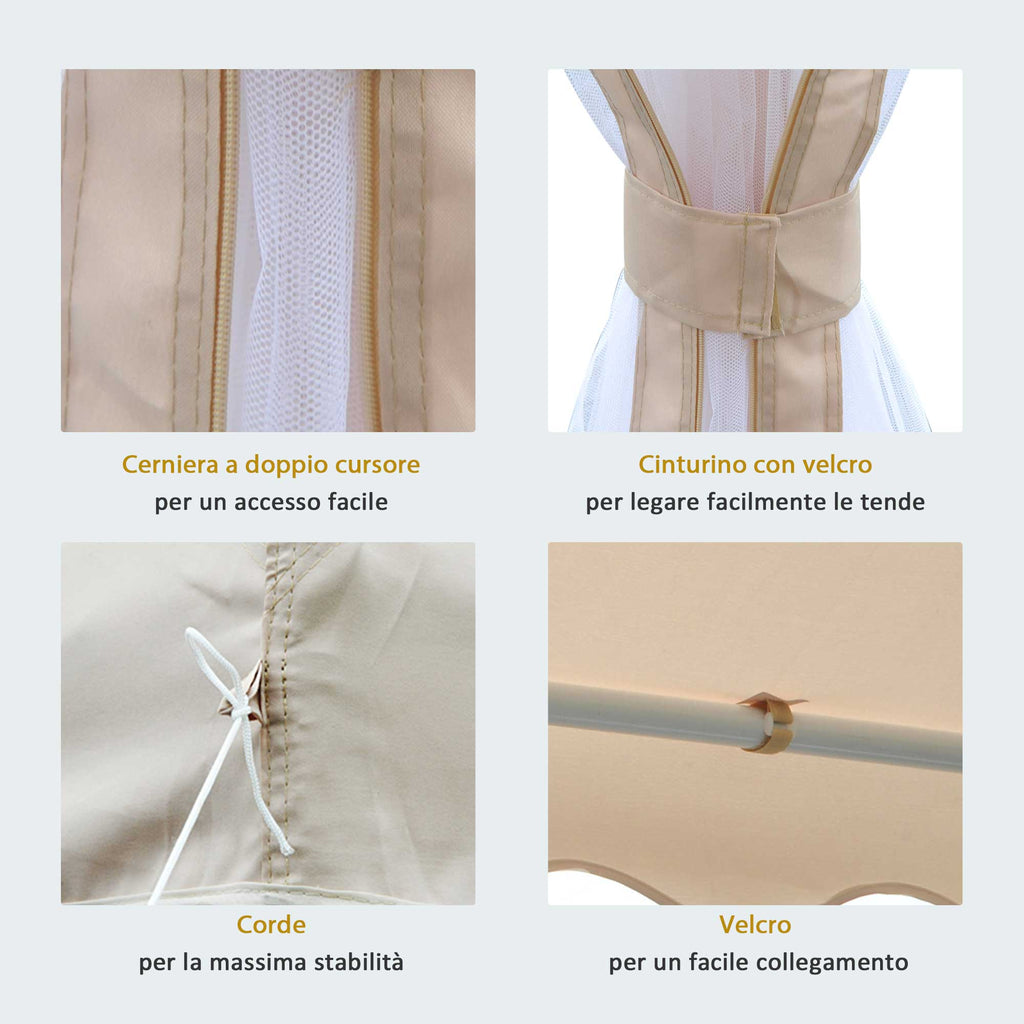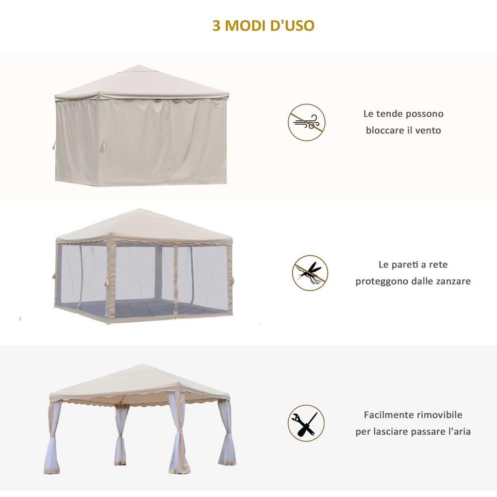 Tonnelle de jardin 3,65x3,65m en fer beige