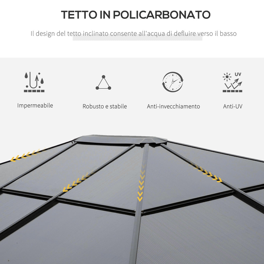 Gazebo da Giardino 3,6x3m Tetto in Policarbonato Grigio