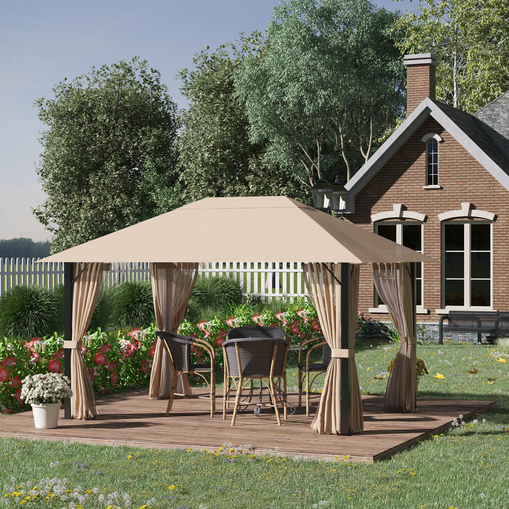 Tonnelle de Jardin 3,98x2,98m avec Moustiquaires en Aluminium et Acier Kaki
