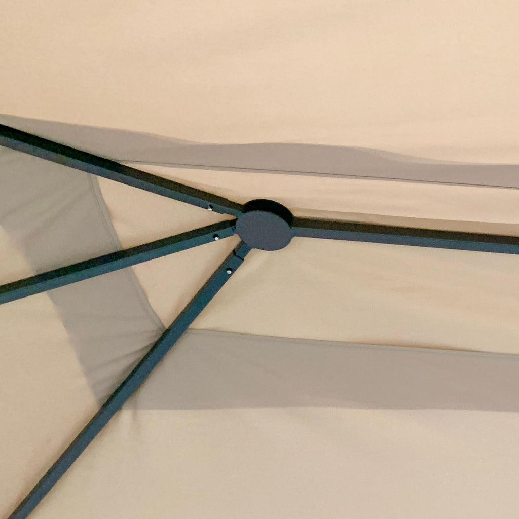 - Toit ventilé : le toit de la tonnelle est conçu avec un évent, de sorte que vous avez une bonne circulation d'air à l'intérieur pour vous garder au frais. La capote supérieure est en polyester avec un revêtement en PU pour fournir une protection solaire.