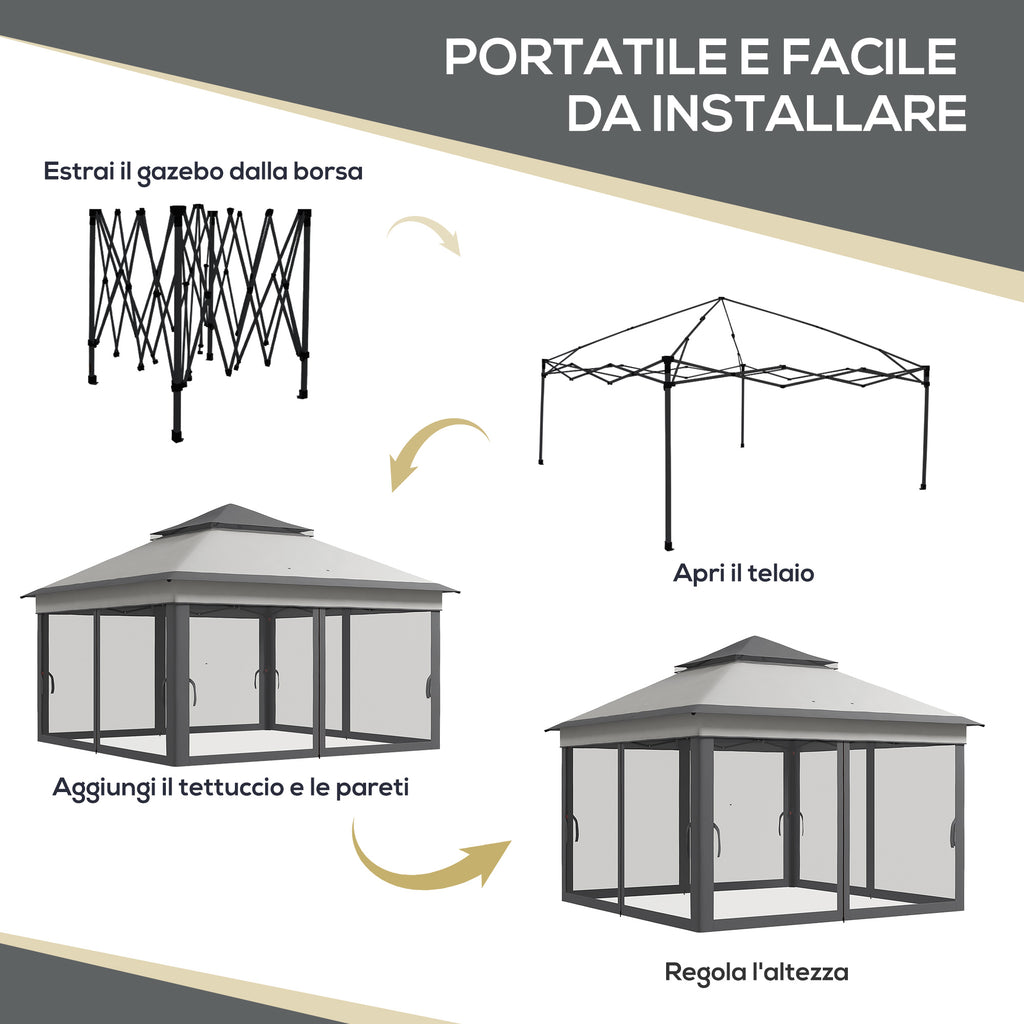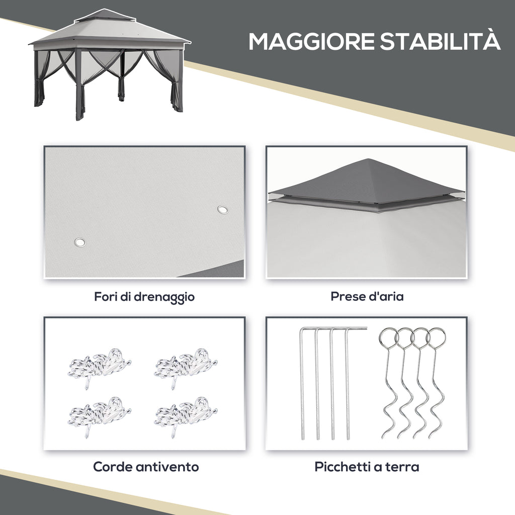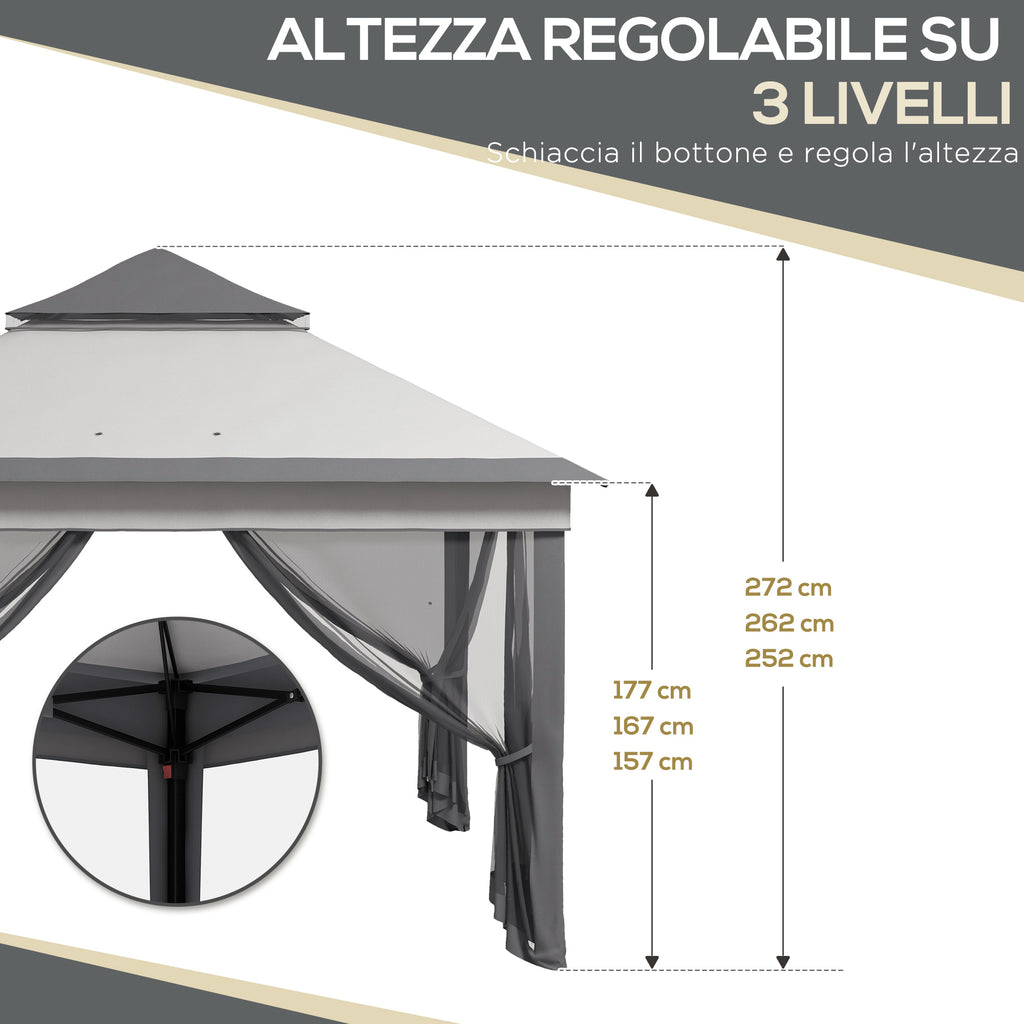 Gazebo da Giardino 326x326x272 cm Altezza Regolabile e Zanzariere Grigio Chiaro e Scuro