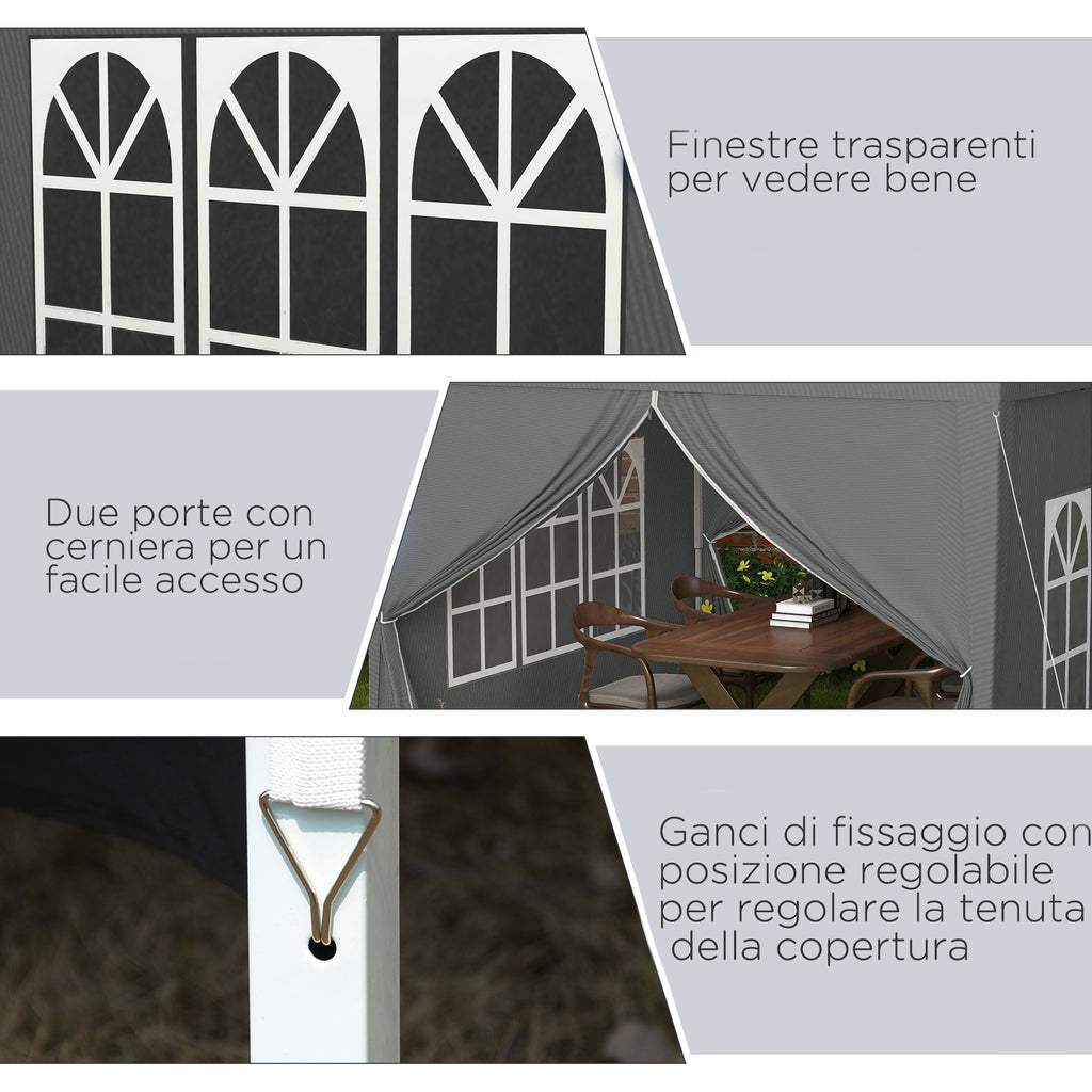 Gazebo da Giardino 3x3 m Pieghevole con 4 Pannelli Laterali in Acciaio e Tessuto Oxford Grigio