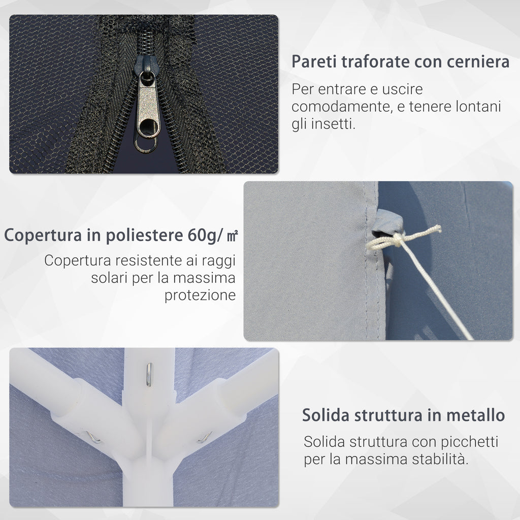 La tonnelle de jardin rend votre espace extérieur plus fonctionnel et pratique. Le revêtement en polyester assure une protection maximale contre le soleil. Les murs sont équipés d'une moustiquaire avec un zip sur 2 côtés, pour un passage plus facile sans laisser entrer les insectes. Profitez de vos moments à l'extérieur avec cette tonnelle d'extérieur pratique !