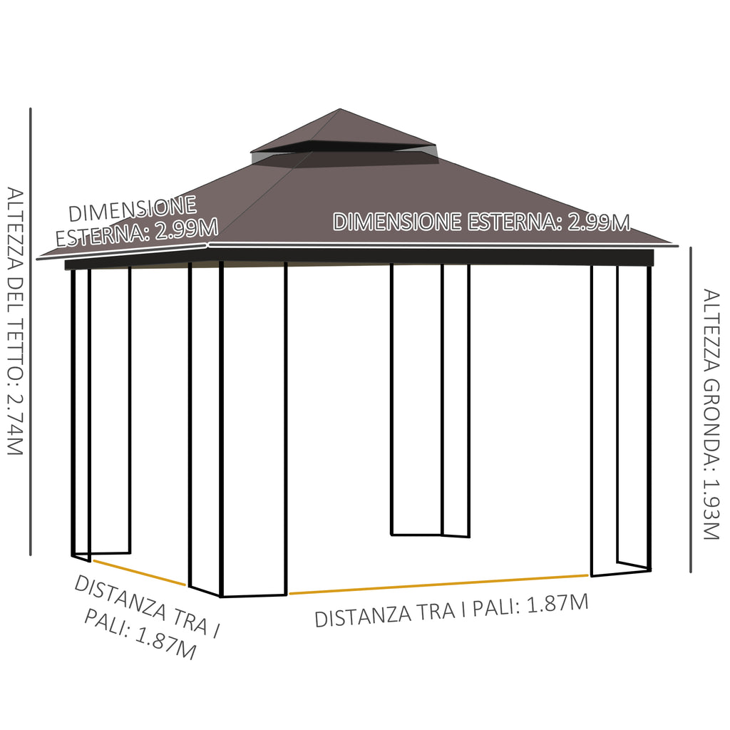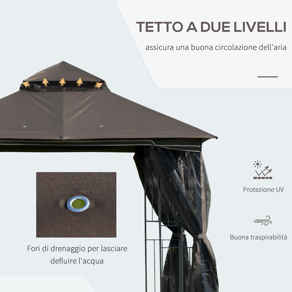 Tonnelle de jardin 3x3m avec moustiquaire en métal café