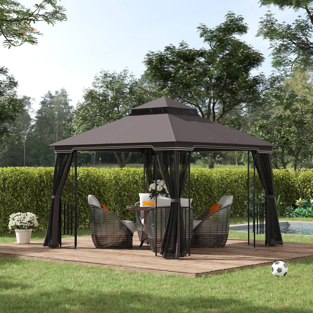 Tonnelle de jardin 3x3m avec moustiquaire en métal café