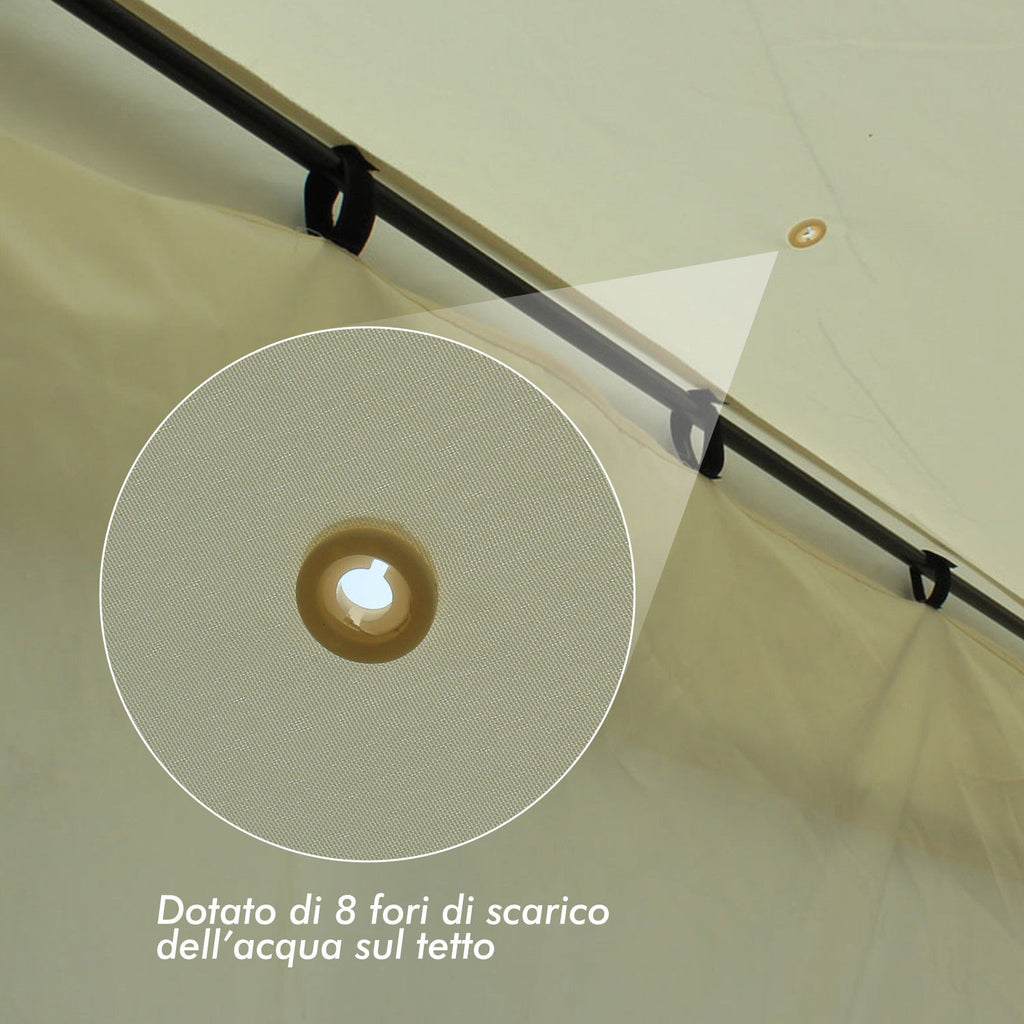 Tonnelle de jardin 3x4m en acier avec tôles latérales et double toit crème