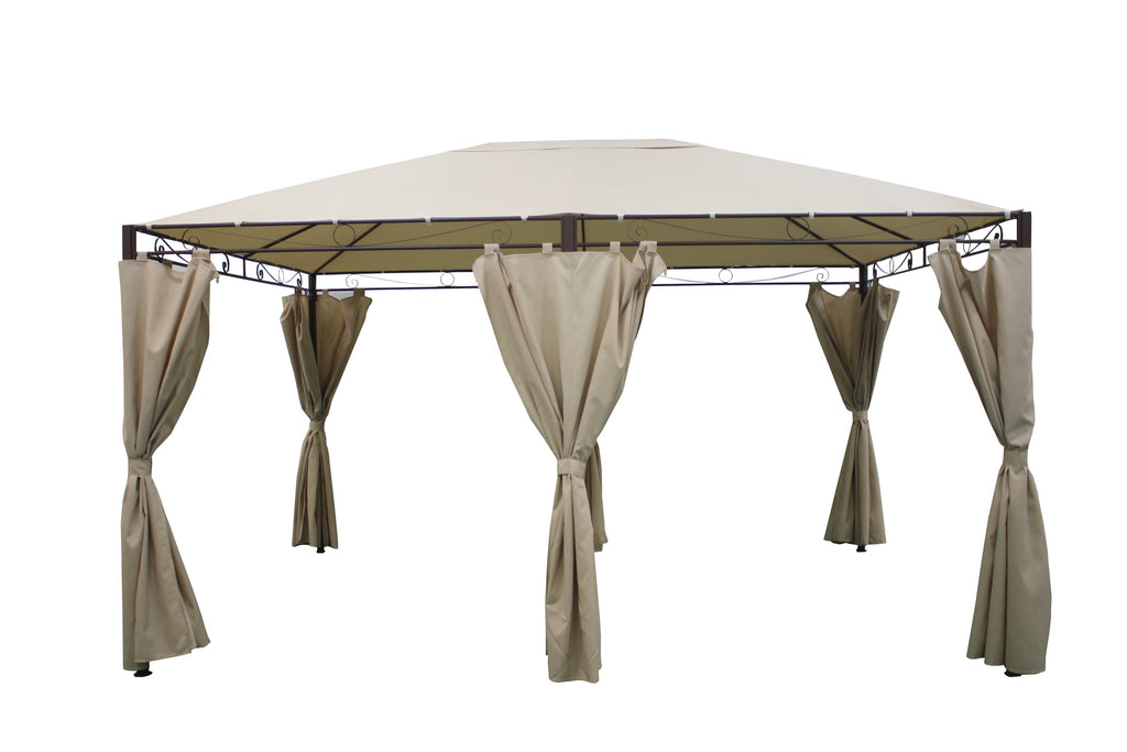 Tonnelle de jardin 4x3x2,6m avec rideaux latéraux écru