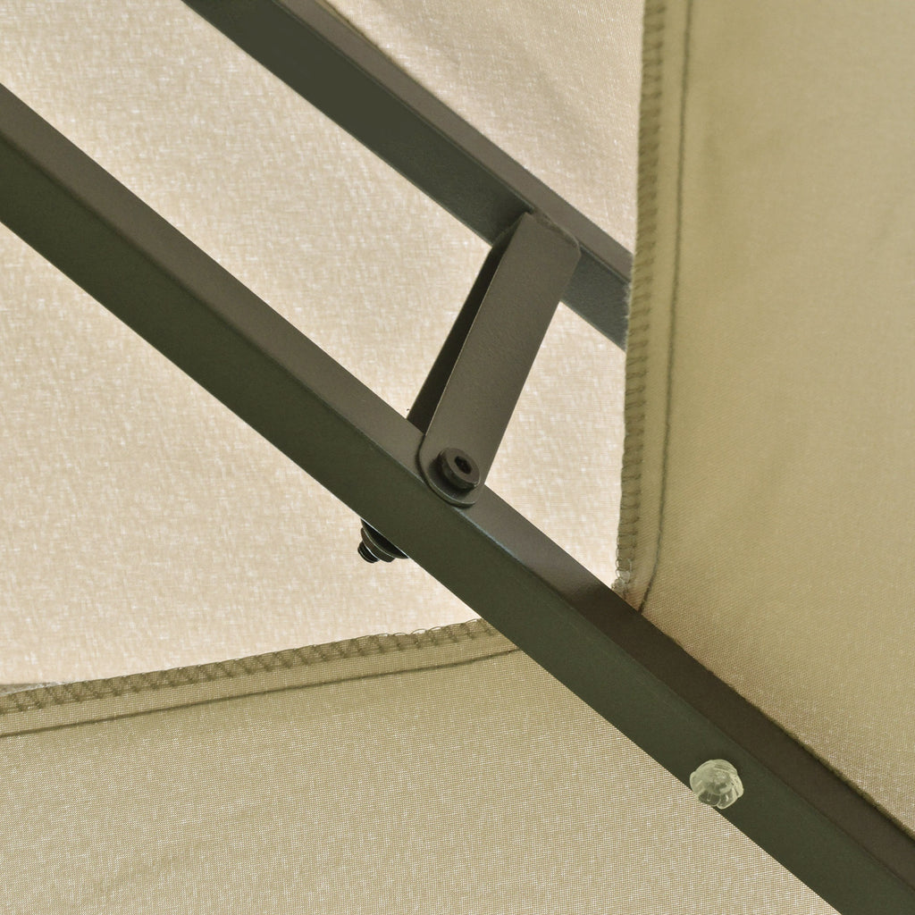 - DOUBLE TOIT : Cette tonnelle de jardin a un double toit pour favoriser une bonne circulation de l'air au sein de la structure. La housse est en tissu polyester avec revêtement PA et est équipée de 8 trous pour l'évacuation des eaux de pluie.