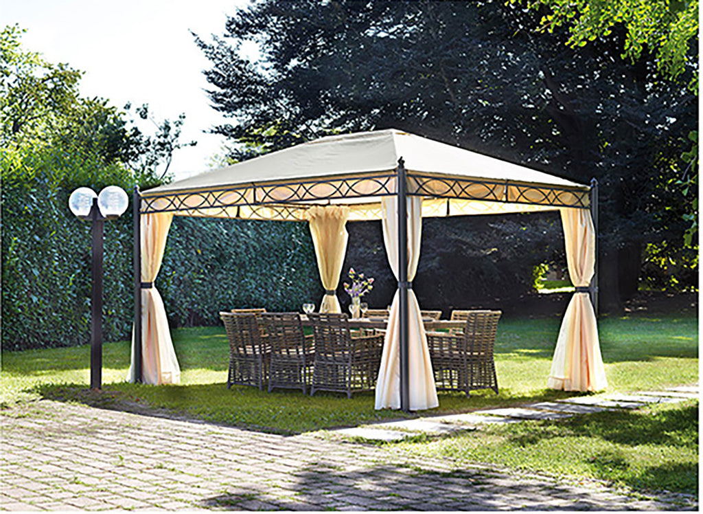 Tonnelle de Jardin Rectangulaire en Fer 3X4m Vorghini Iron Sand avec Rideaux Latéraux et Moustiquaire