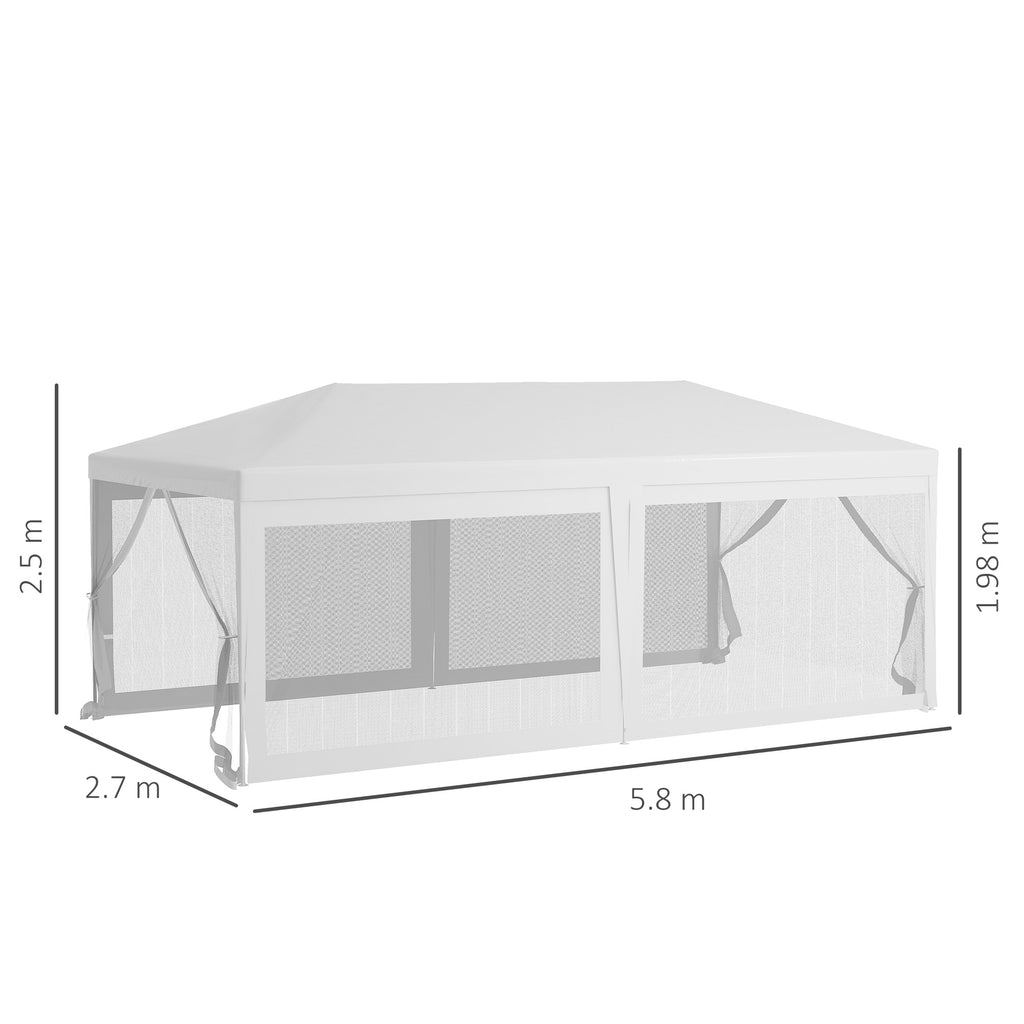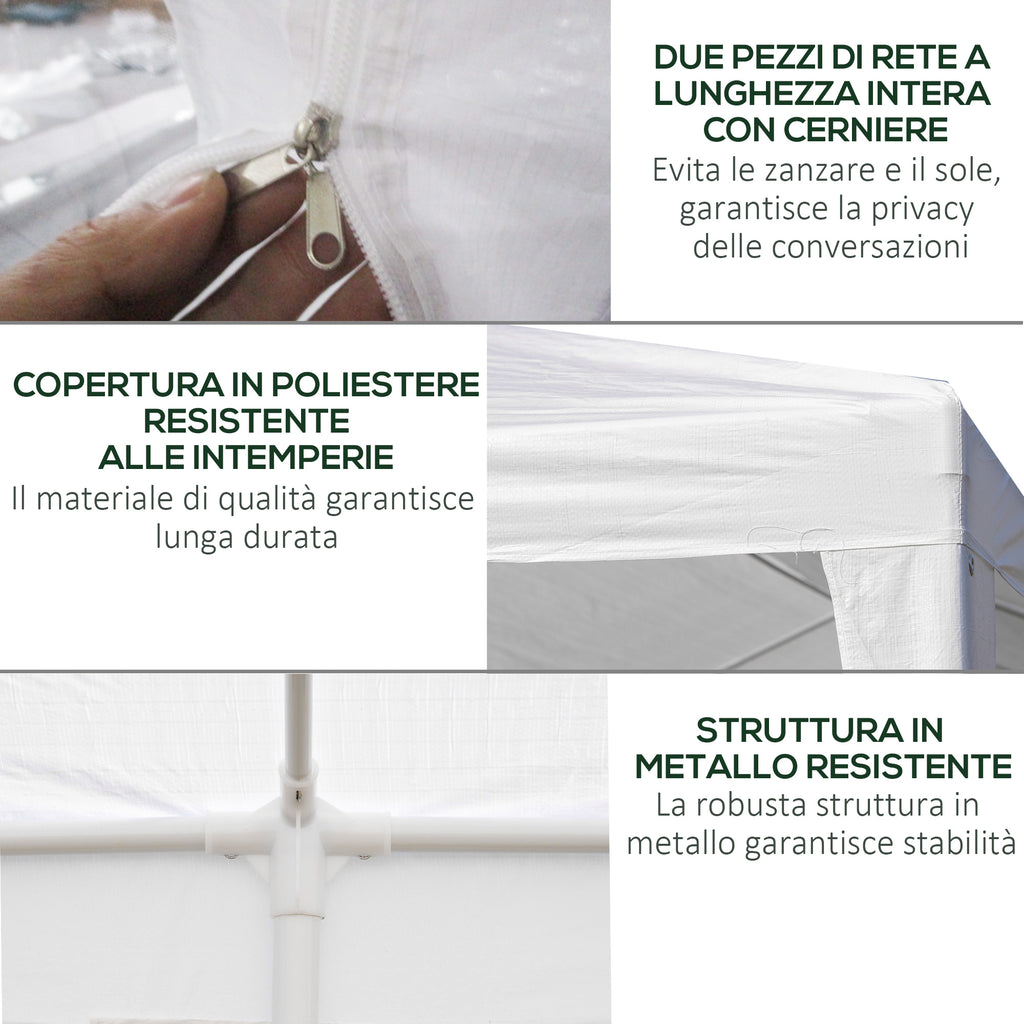 Gazebo da Giardino per Feste con 6 Pareti Rimovibili a Zanzariera 582x295x255cm Bianco