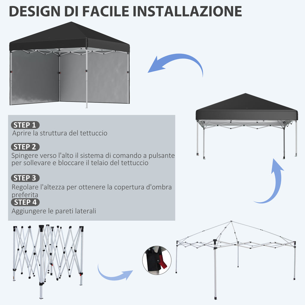 Gazebo da Giardino Pieghevole 297x297x274 cm in Acciaio e tessuto Oxford Nero
