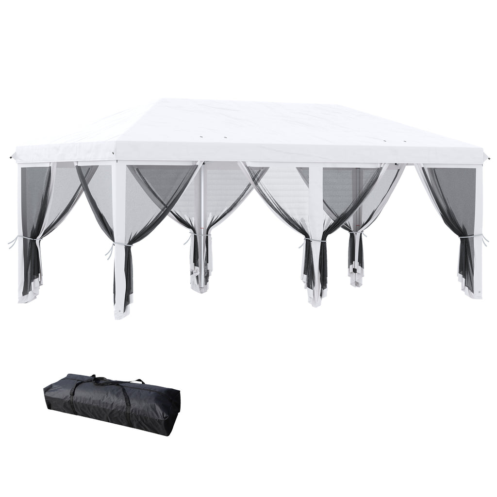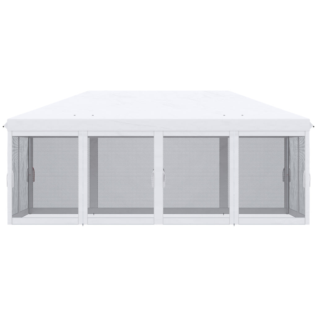 Gazebo da Giardino Pieghevole 585x295x270 cm con 6 Tende Zanzariere in Acciaio Bianco Crema