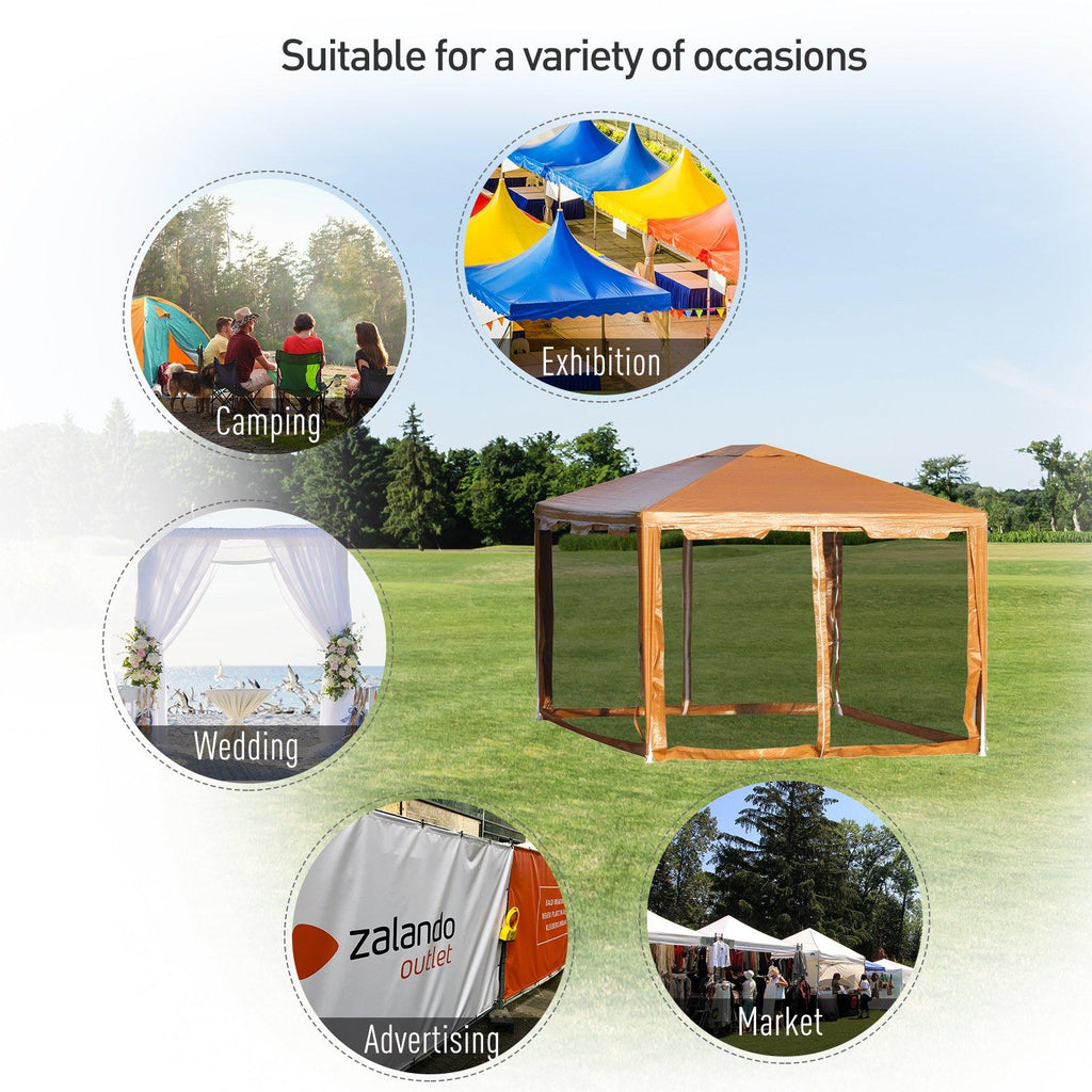 Tonnelle de jardin pliante avec moustiquaire 395x295x355 cm en métal et polyéthylène marron clair