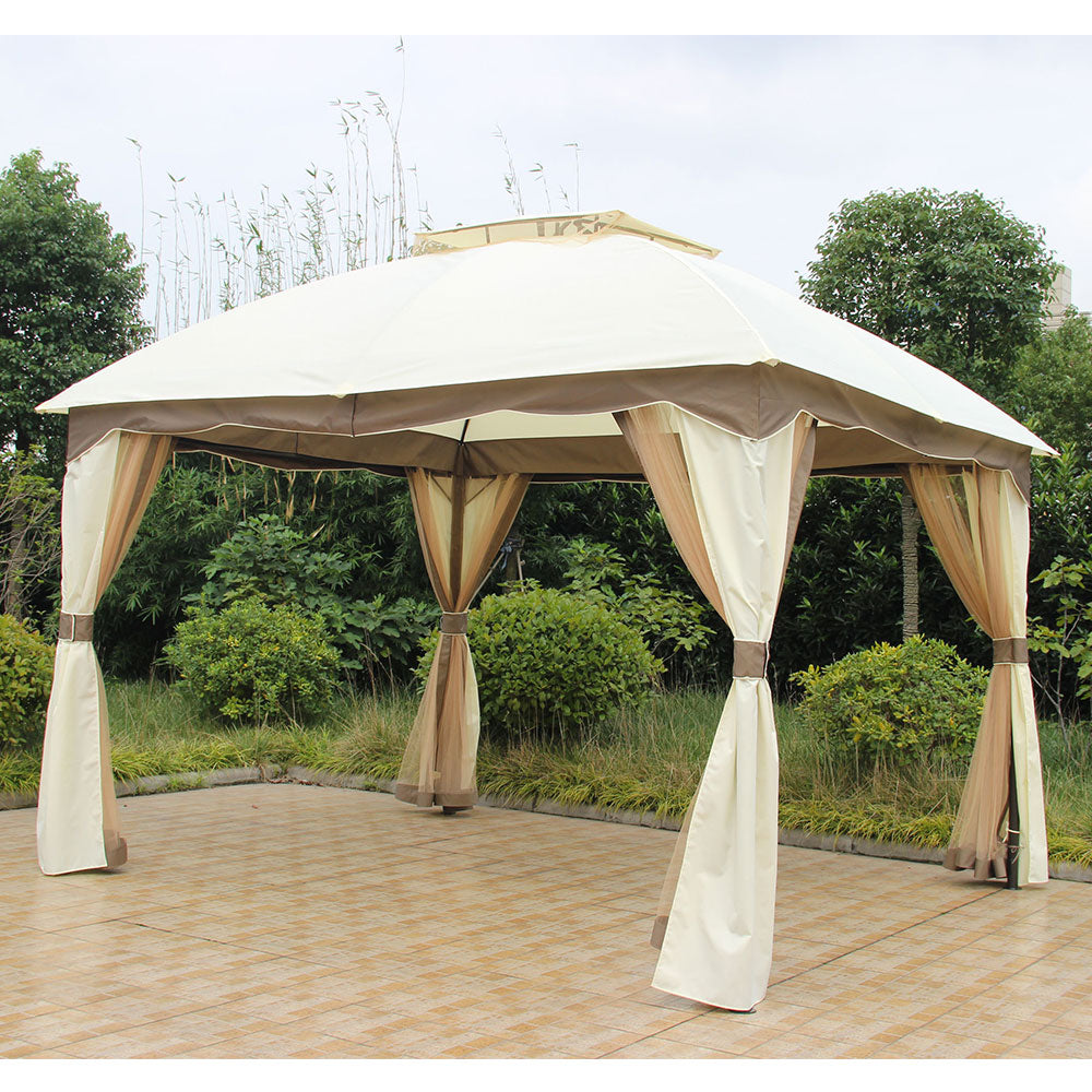 Gazebo avec structure en acier peint avec dessus en polyester et moustiquaire.