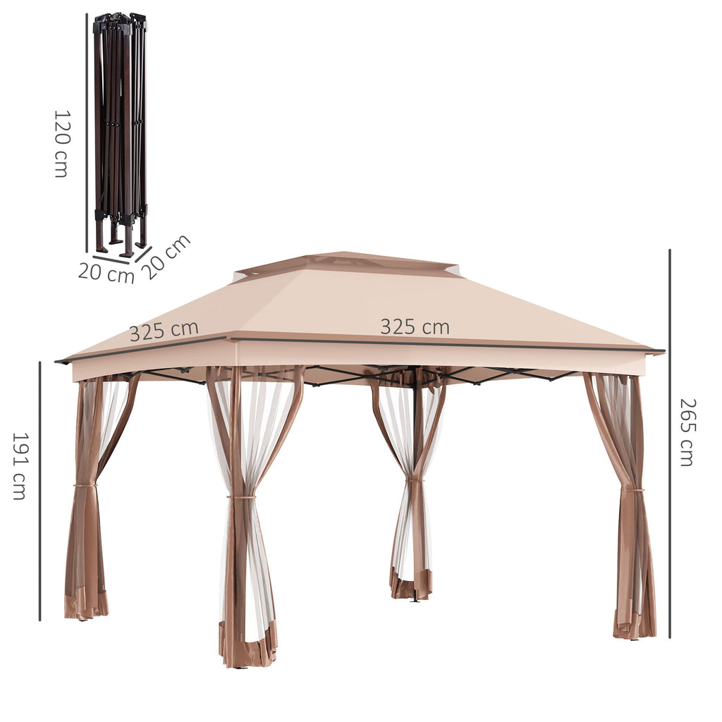 Tonnelle Double Toit Imperméable avec Moustiquaires Marron 3,25x3,25 m
